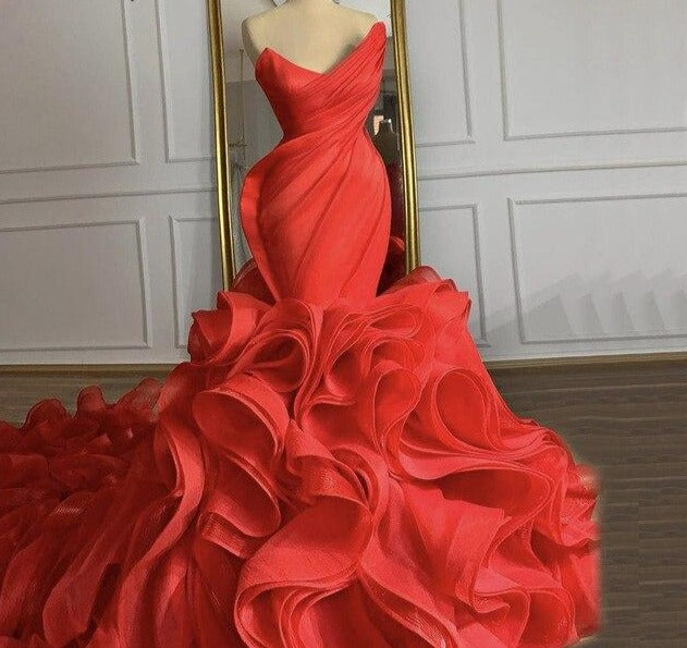 Orange Sweetheart Sexy Elegant Wedding Dresses Gowns Flowers High-end Mermaid Bridal Dress
