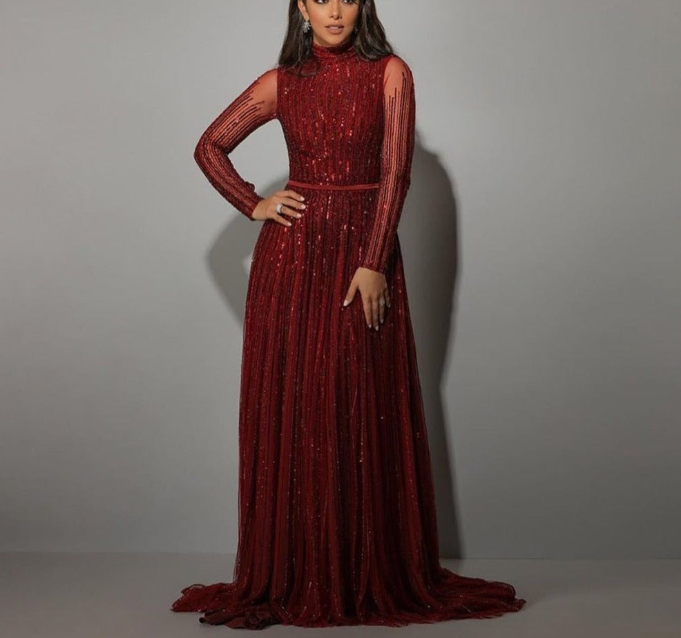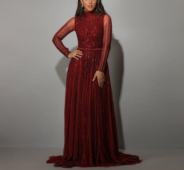 Luxury Evening Dresses Gowns A-Line Sparkle Beading For Women Party