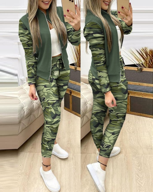 Woman 2 Pieces Trouser Suits Zipper Jacket Pants Tracksuit