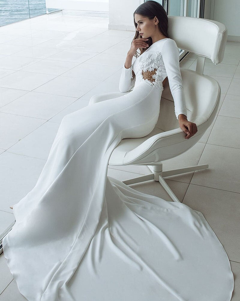 Sexy Backless See Through Satin Mermaid Wedding Dresses