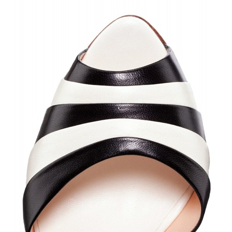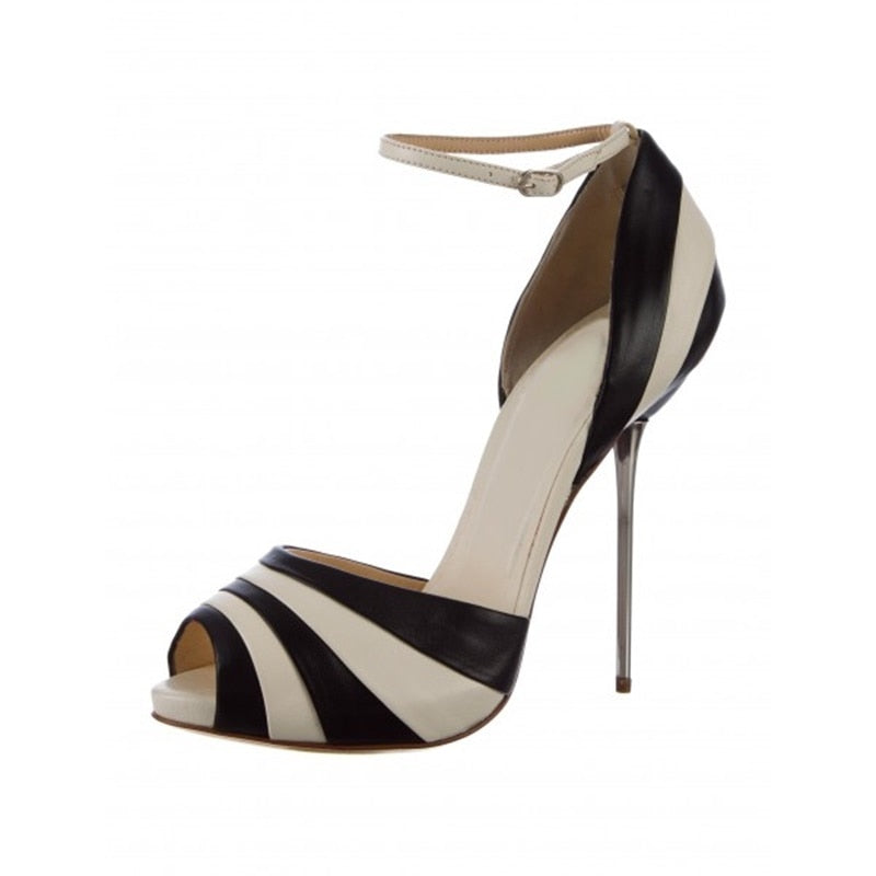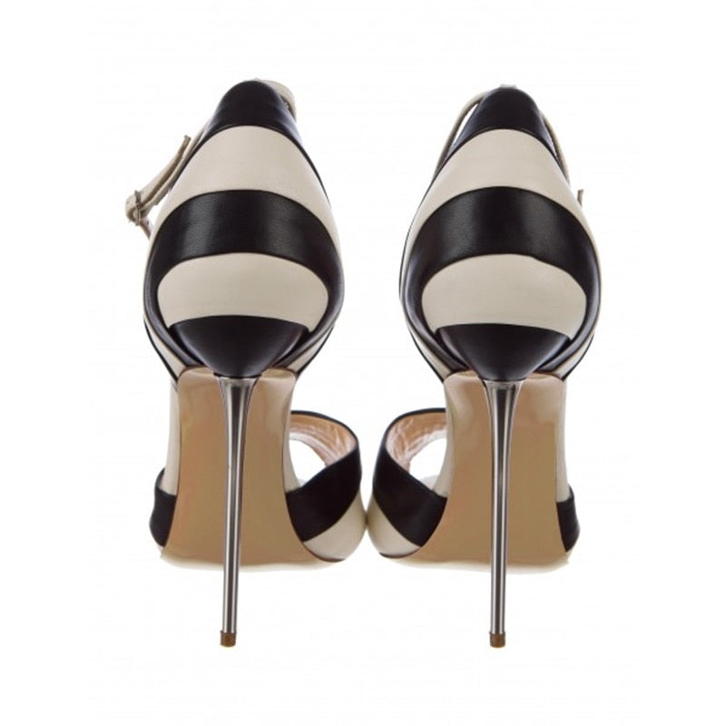 Sexy Black and White Stiletto Heels Ankle Strap Pumps