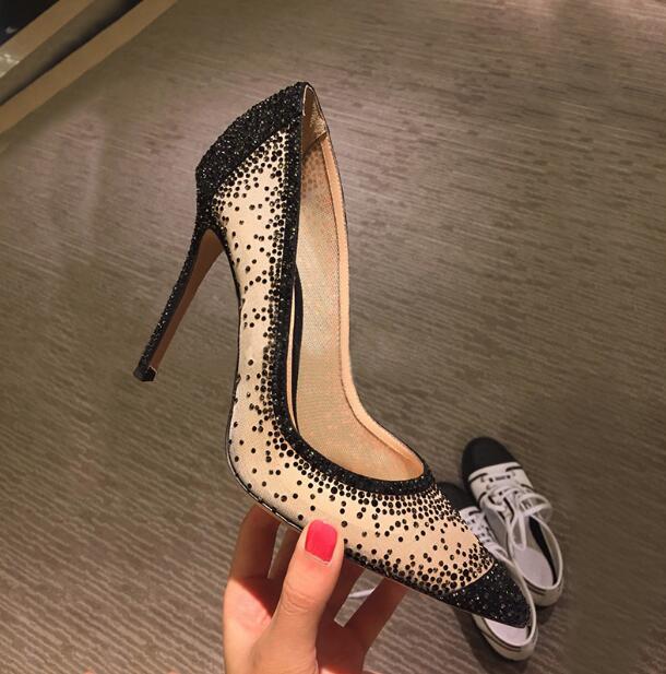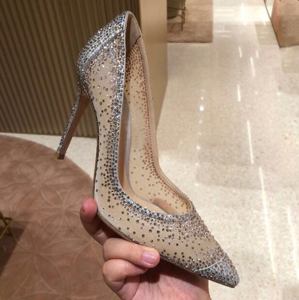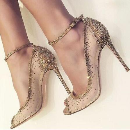 Sexy Gold Mesh Rhinestone Patchwork High Heel Shoes Champagne Glittering Heels Pumps Bling Bling Crystal Wedding Shoes Bride