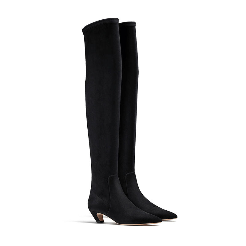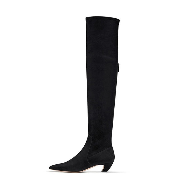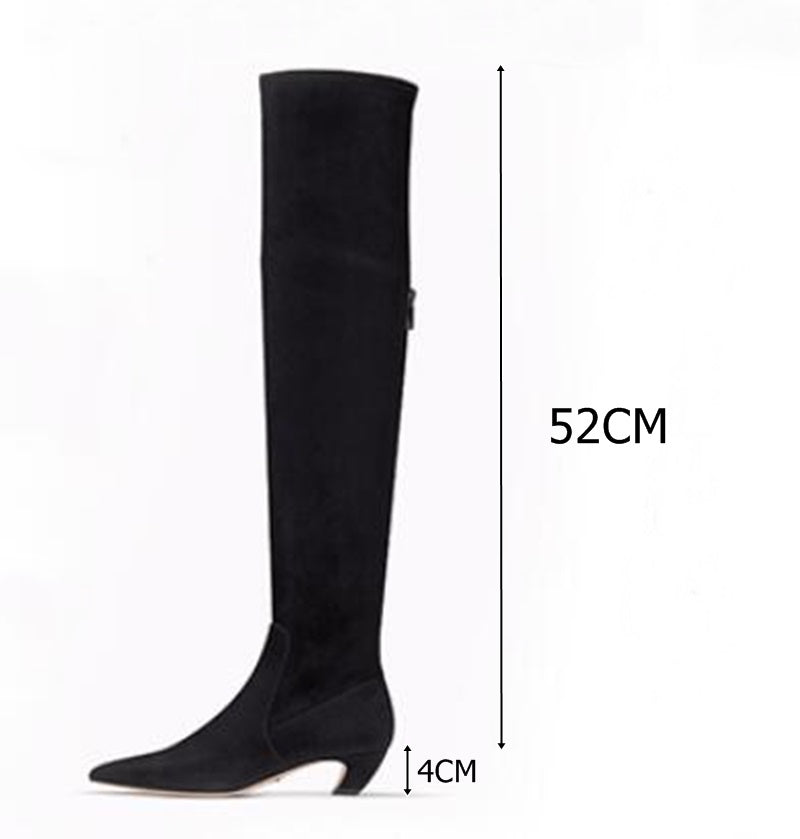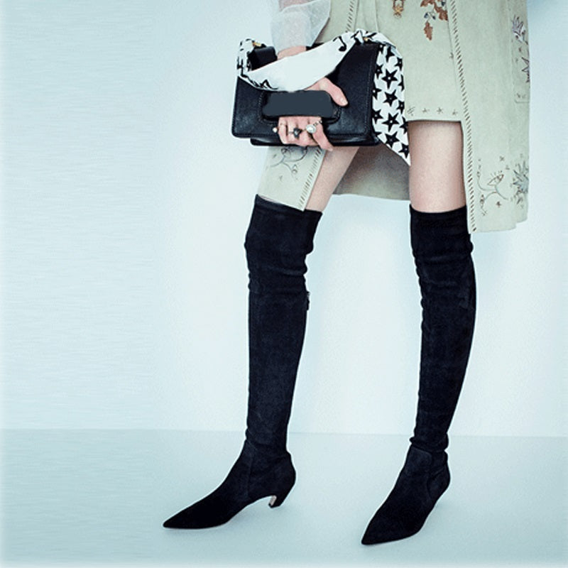 sexy low heels over the knee high boots leather cat heel back zipper black suede shoes 2022 female winter boots stockings boots