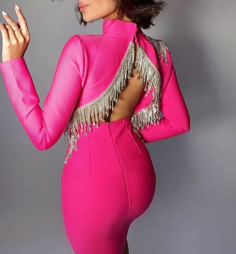 Sexy Sparkly Backless Diamonds Tassel Rayon Bandage Dress