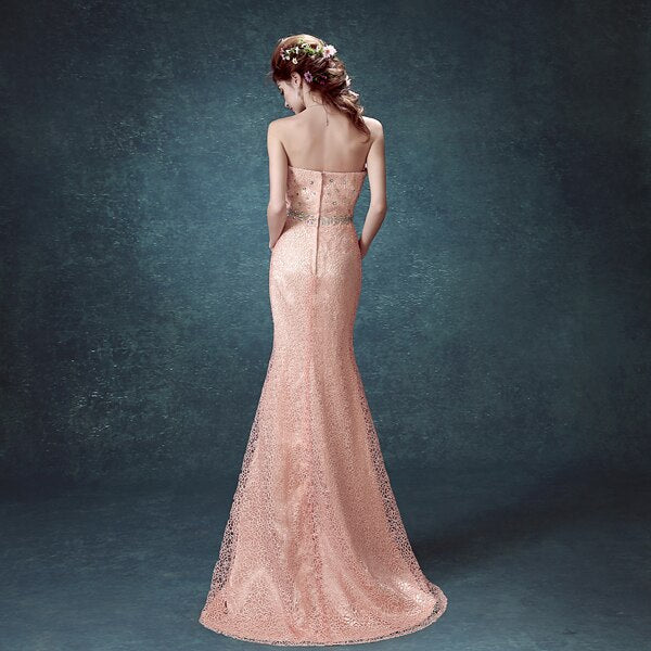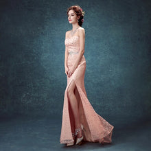 sexy sweetheart pink lace mermaid Evening Dress robe de soiree vestido longo crystal long prom dresses Formal gown