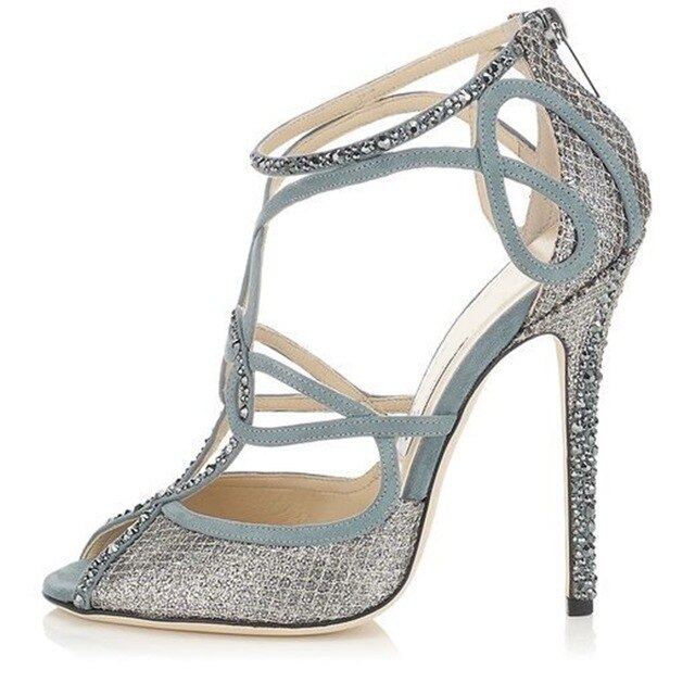 Shinning Crystal Twined Straps Hollow Out Sandals Woman Open Toe Stiletto High Heeled Wedding Dress Pumps Rhinestone Heeled Shoe