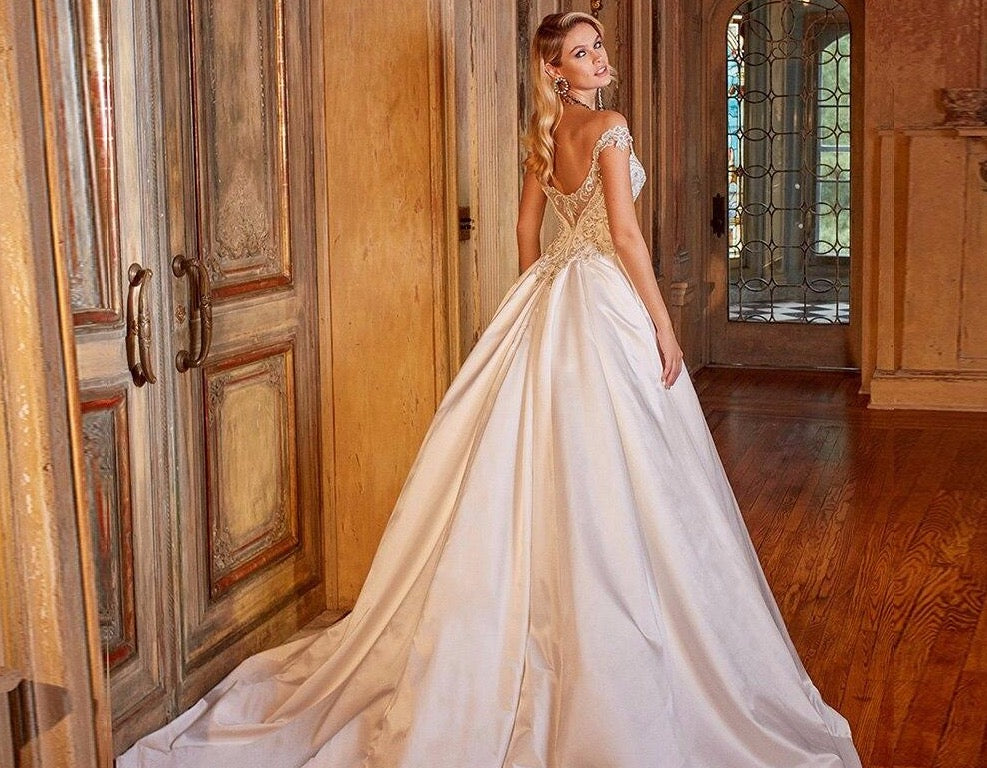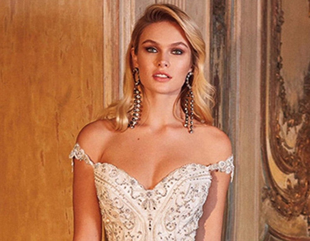 Shiny Full Beading Crystal Satin Wedding Dress Robe Mariage Femme Sweetheart Neck Zipper Up Short Sleeve Simple Bridal Gowns