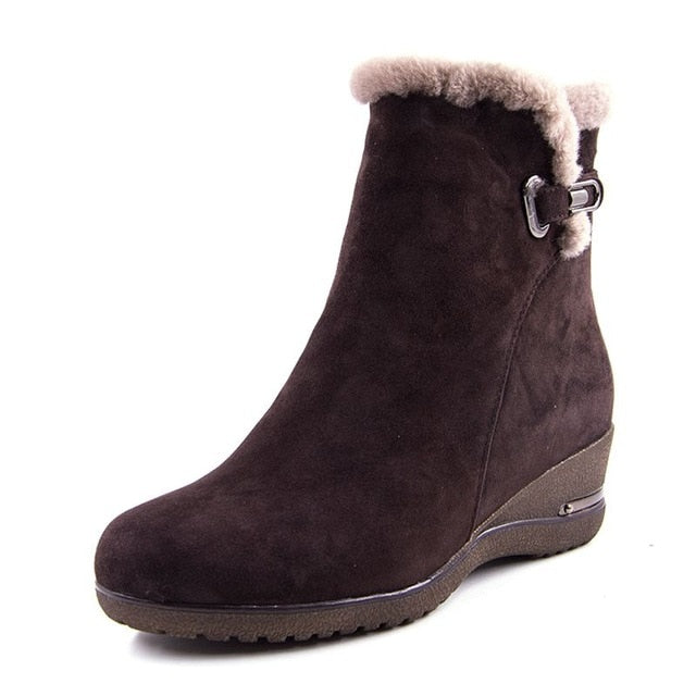 shoes Winter Boots Warm Wool Snow Boots cow Leather Boots Women Shoes Genuine Leather plus size Wedges Non-slip Women Boots