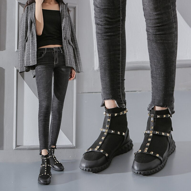 Women Boots Breathable Runway Socks Booties Slip On