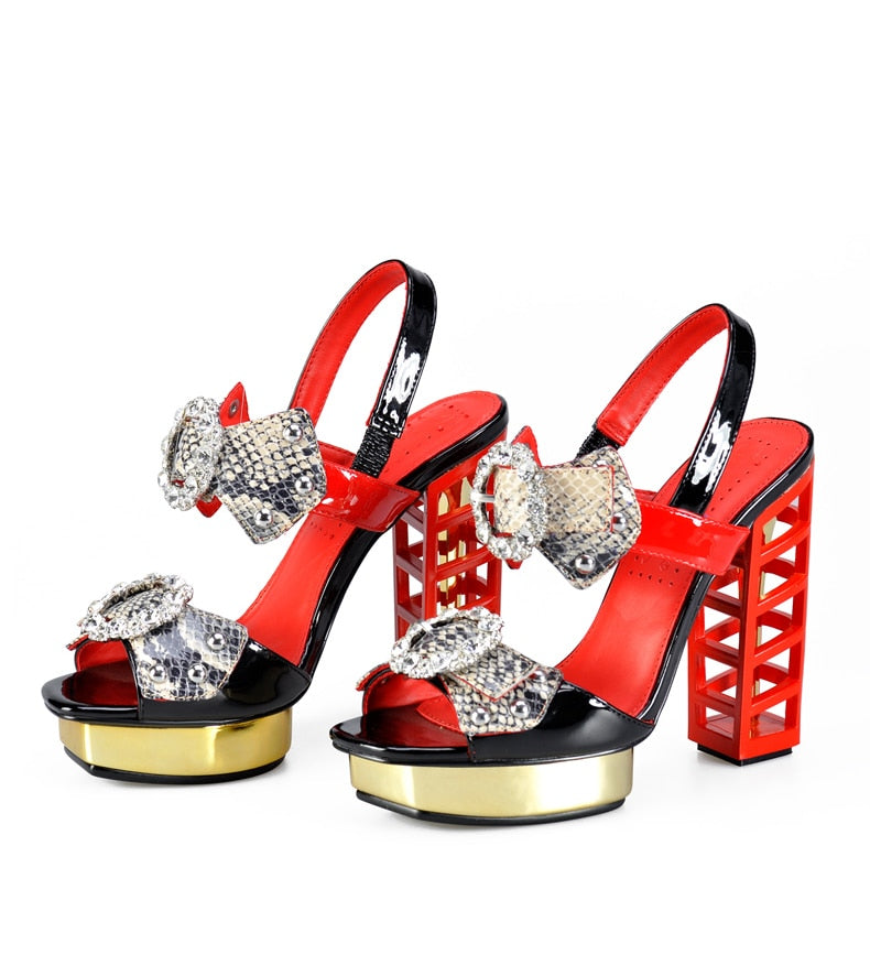 material: Man made PU,synthetic,metalic platform,snake print