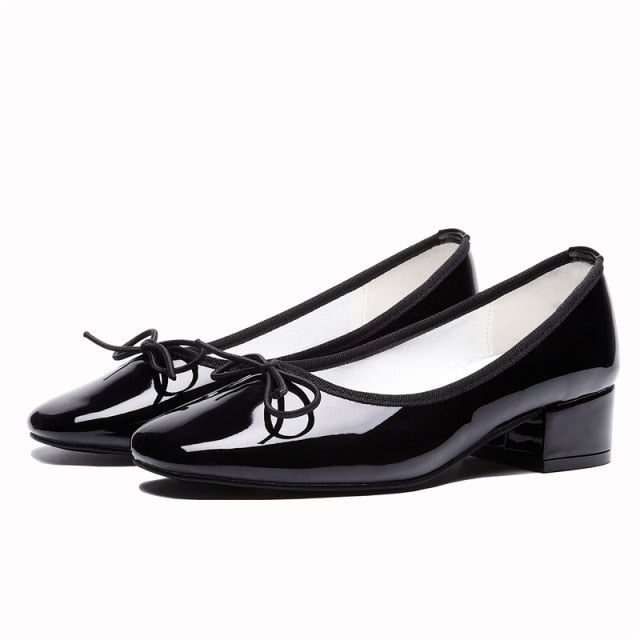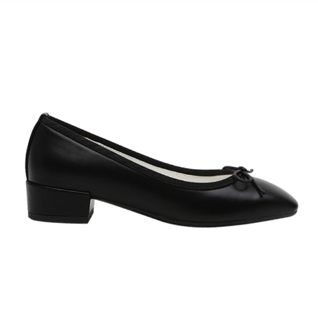 Square Toe Chunky Low Heels Black Work Shoes Women Pumps
