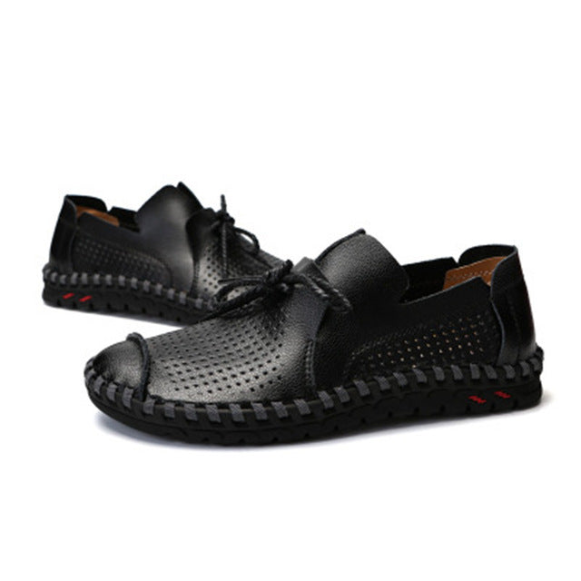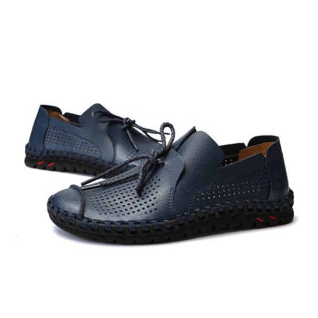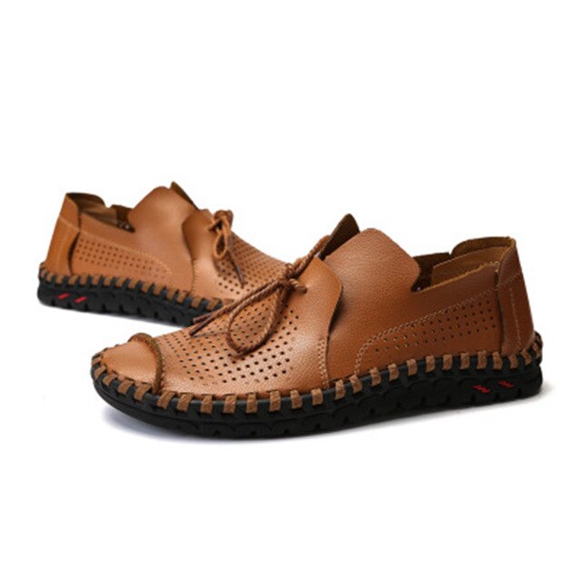Size 47 48 49 50 Luxury Brand Summer Mens Loafers Genuine Leather Casual Moccasins Hollow Out Breathable Lace Up Driving Shoes