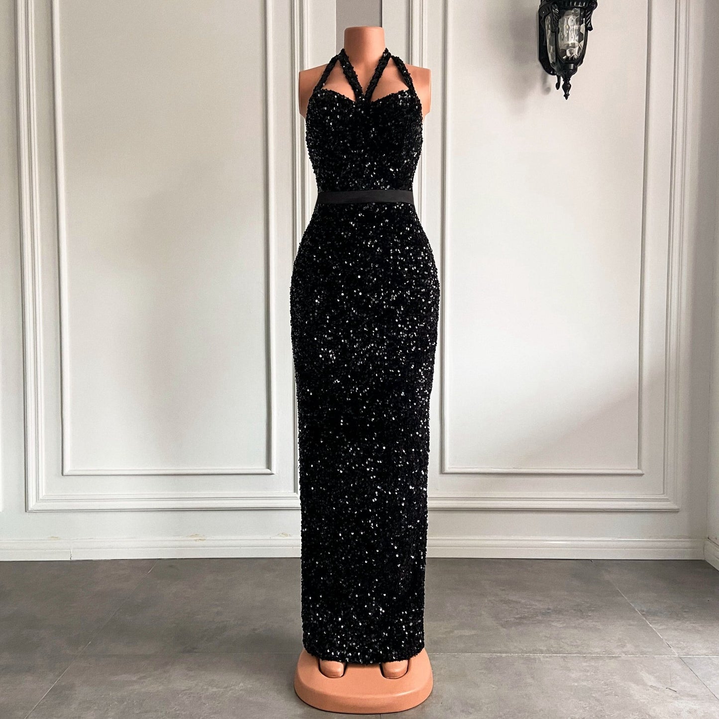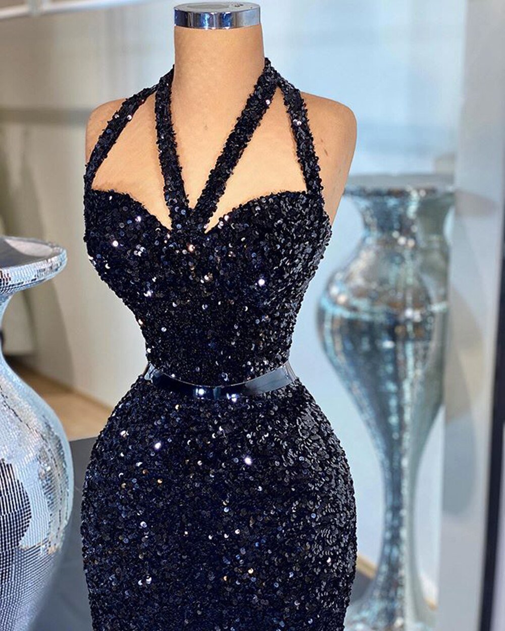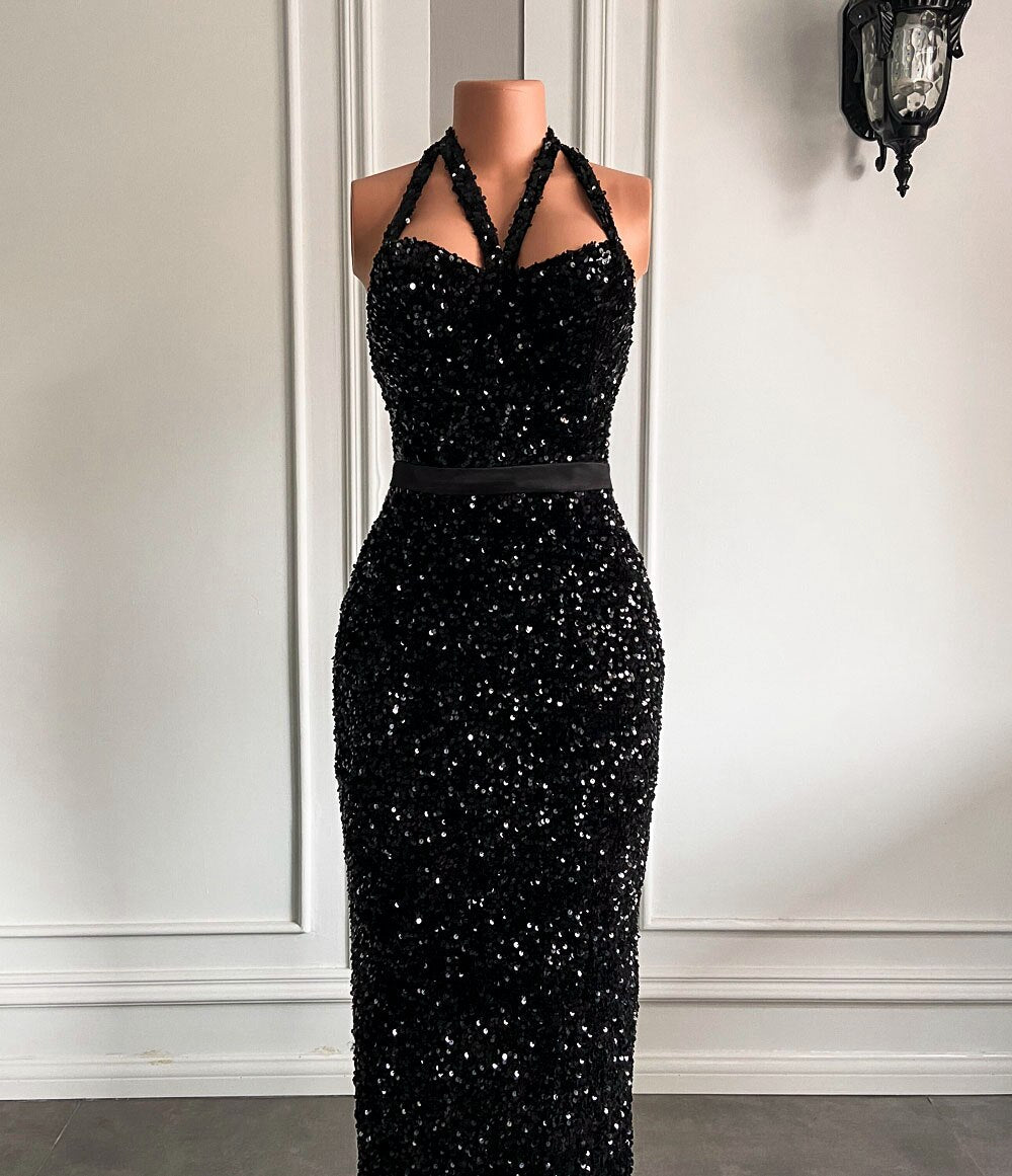 Skinny Sweetheart Black Sequined African Girl Prom Gala Gowns