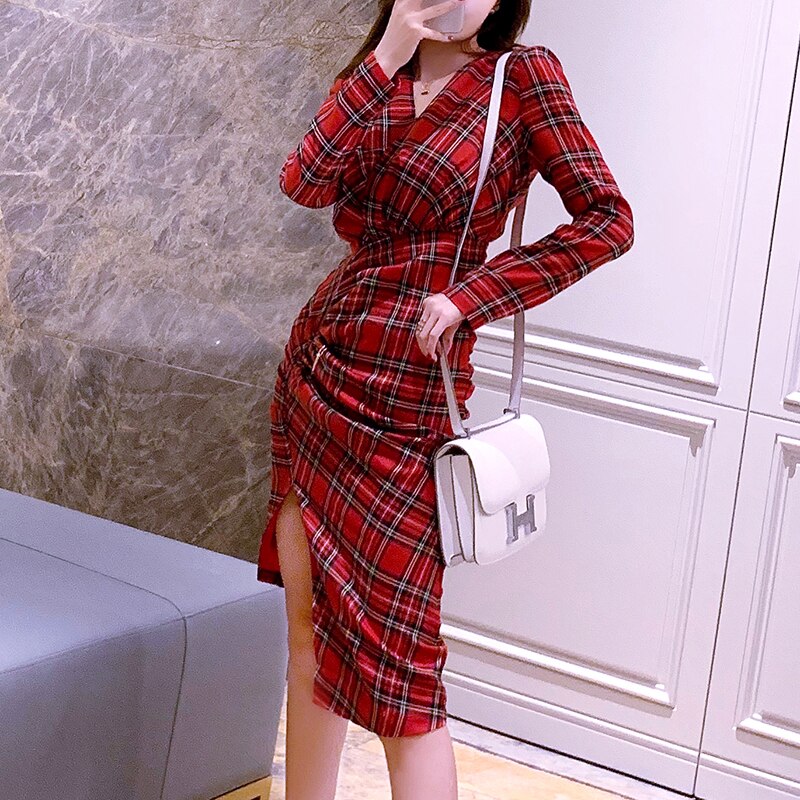 Slim Draped Irregular Hemline Slit Knee Length Dress