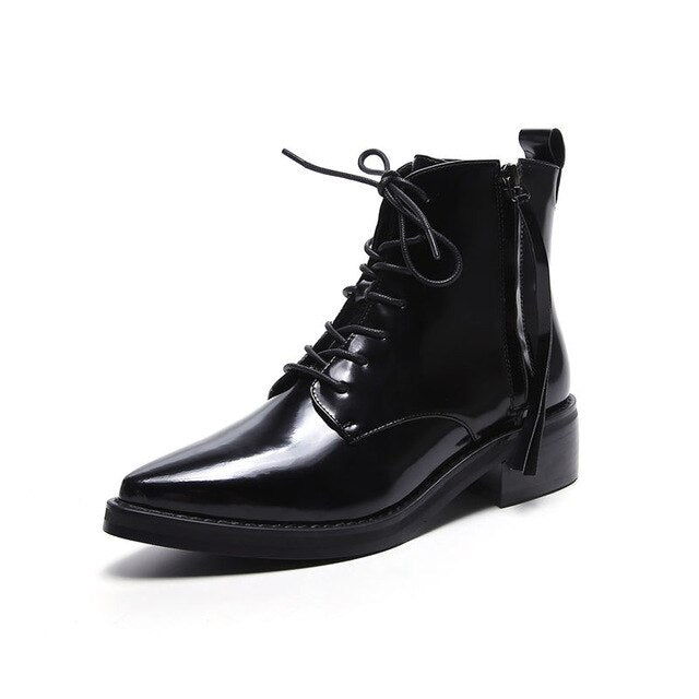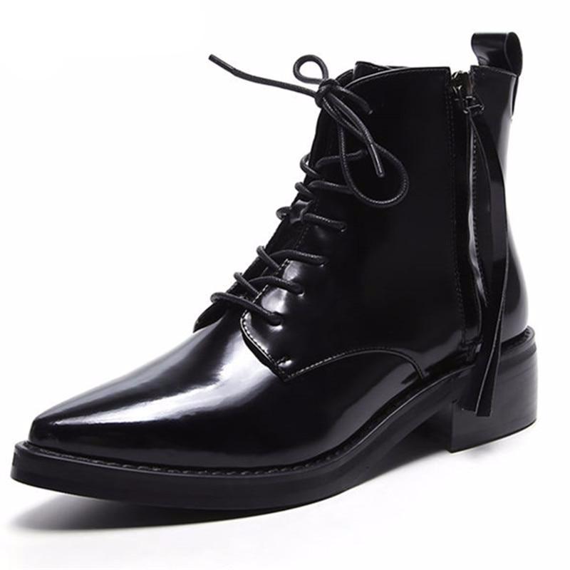 Cow genuine leather boots zip+cross tied med heels autumn winter boots pointed toe ankle boots for women party shoes