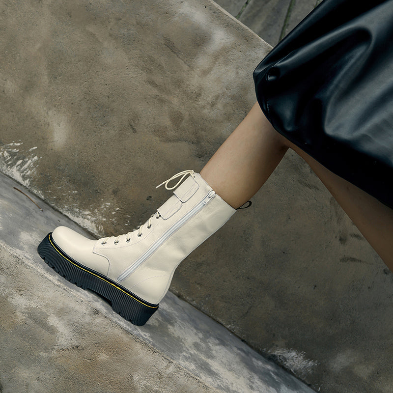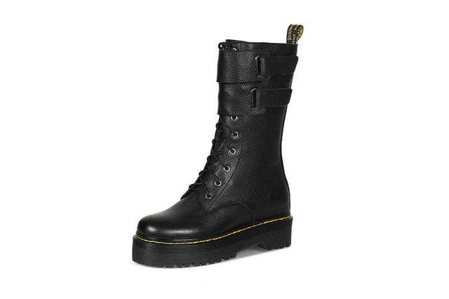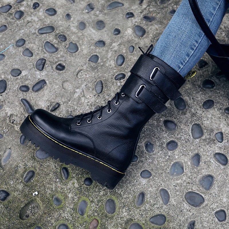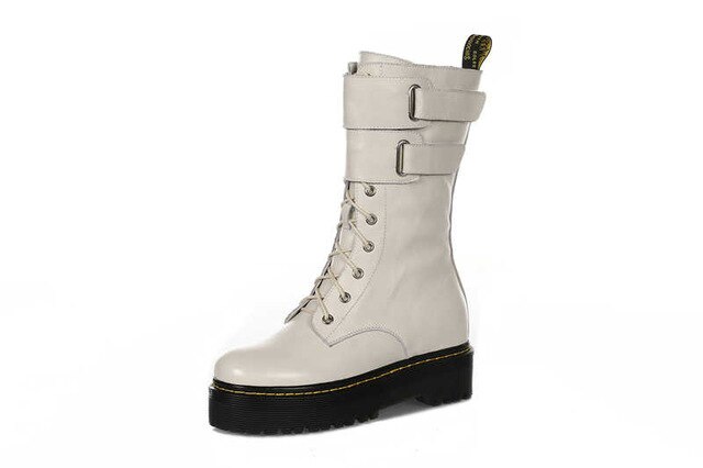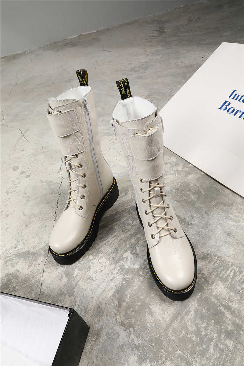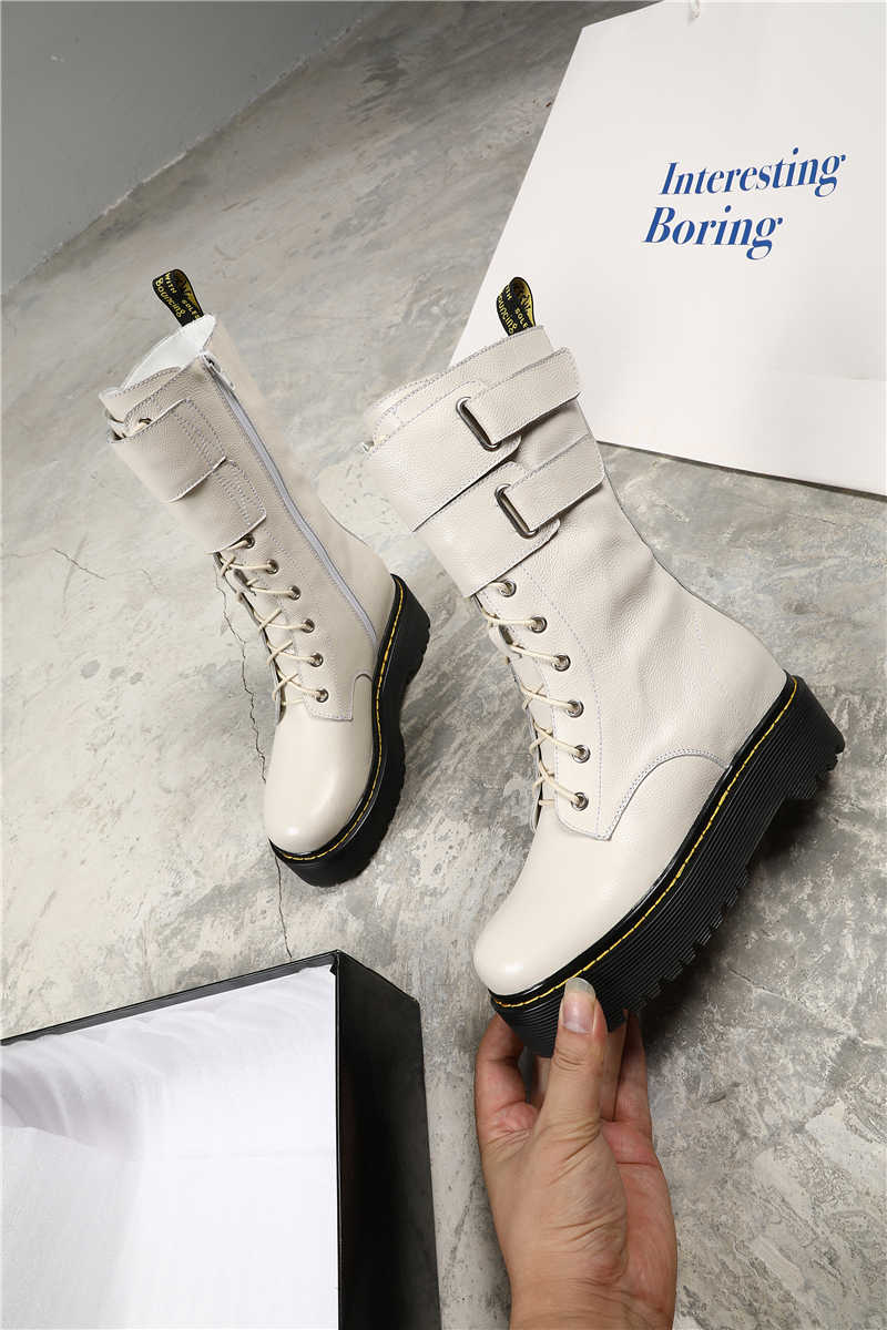 fashion new mid calf boots women round toe genuine leather boots cross tied ladies autumn winter flat platform boots