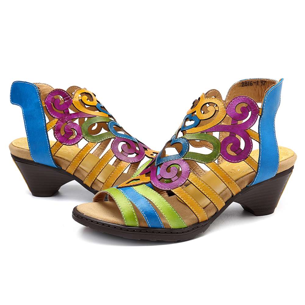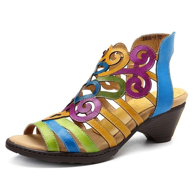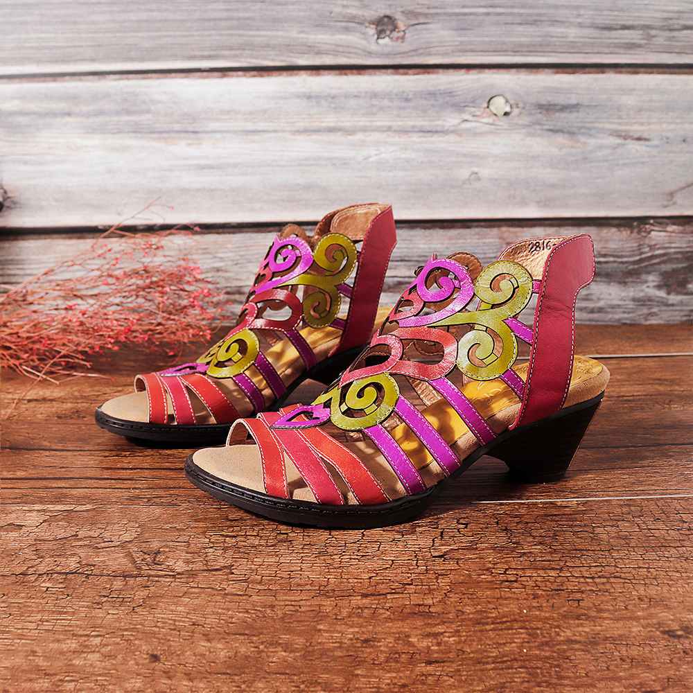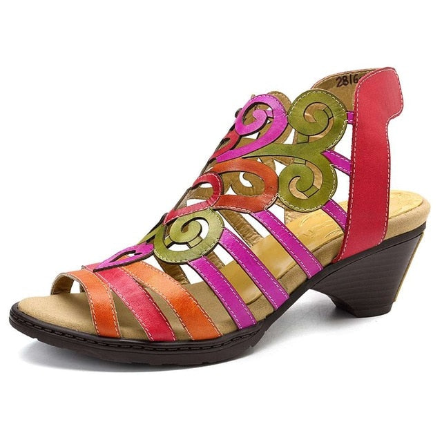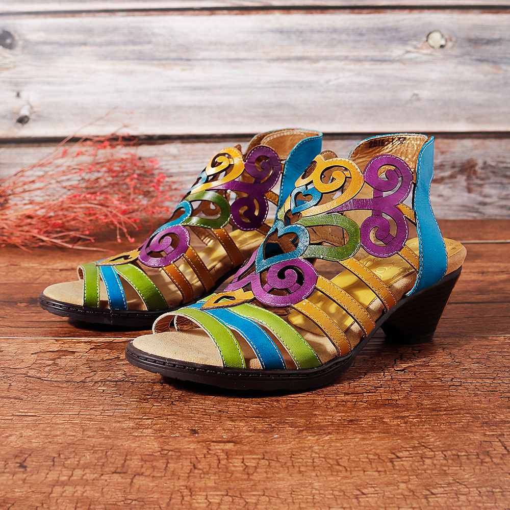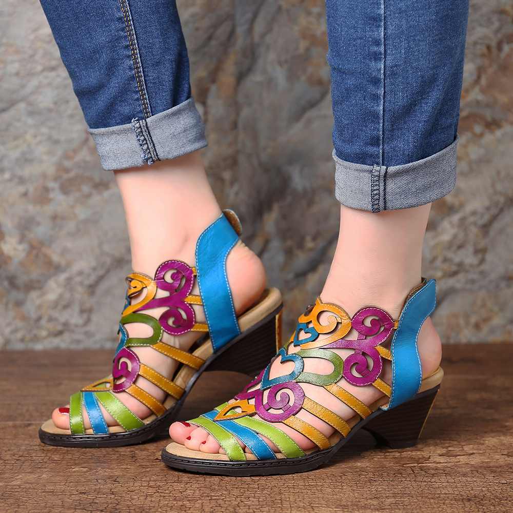 Hollow Sandals Genuine Leather Love Shape Soft Hook Loop Low Heel Sandals Ladies Shoes Women Shoes Elegant High Heels