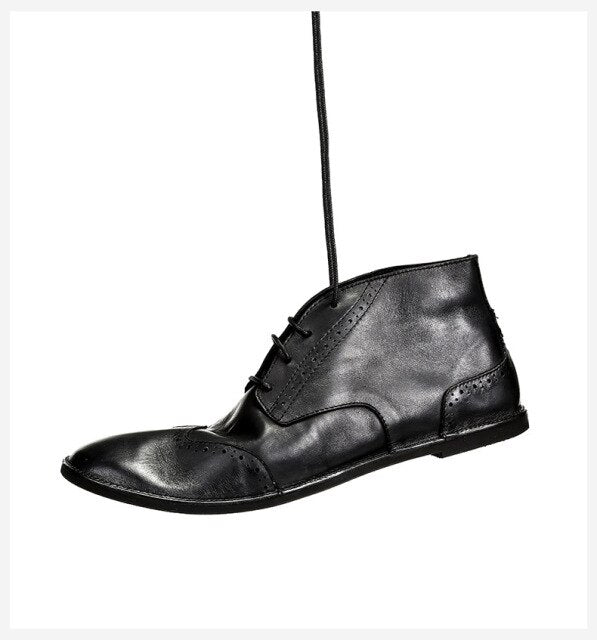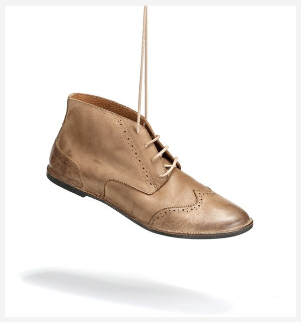Soft Runway Popular Men Shoes Flats Lace Up High Top Tan Oxfords