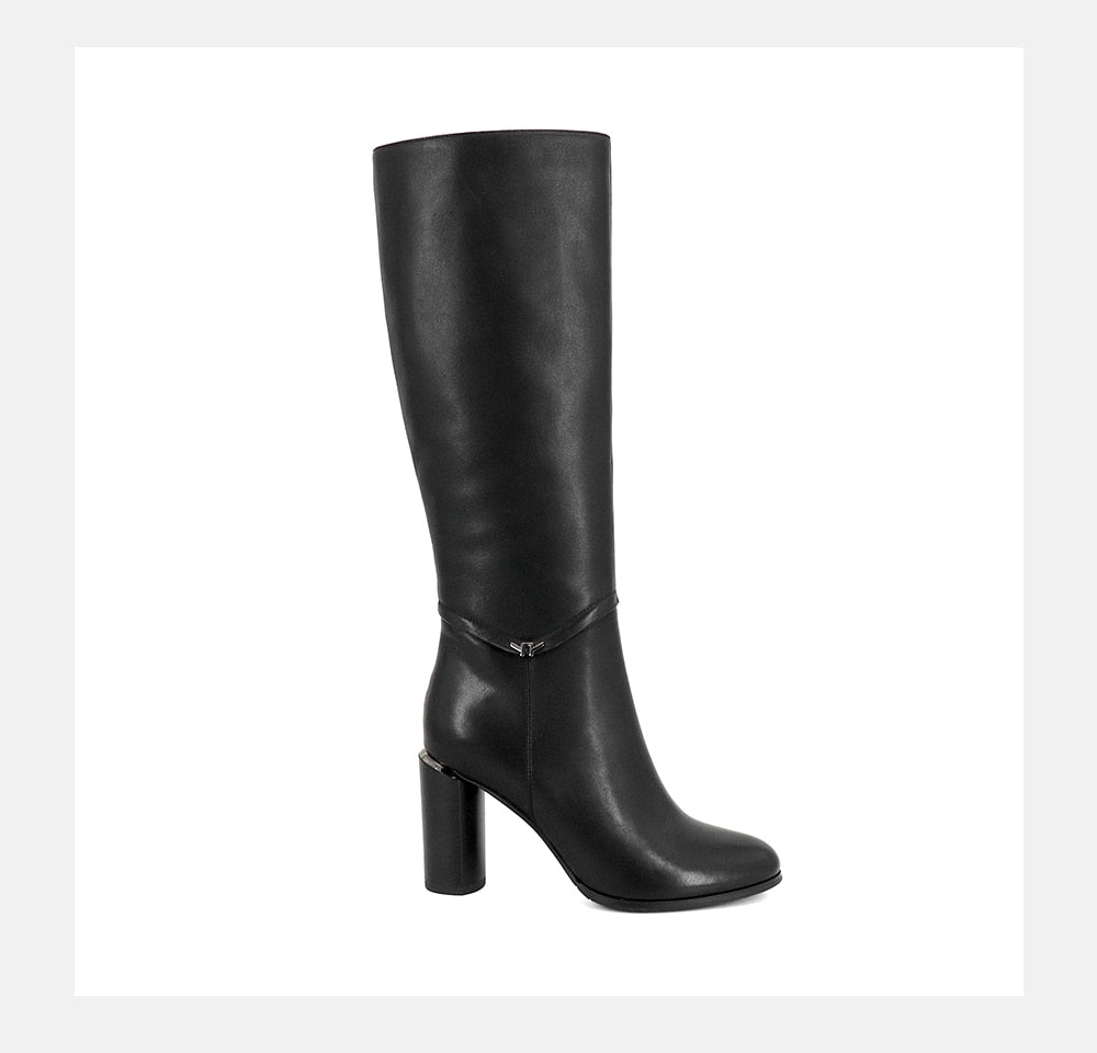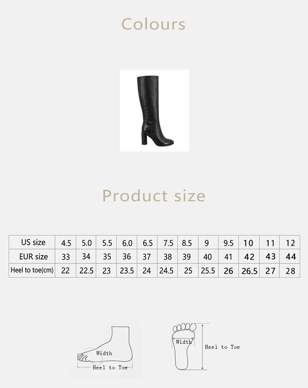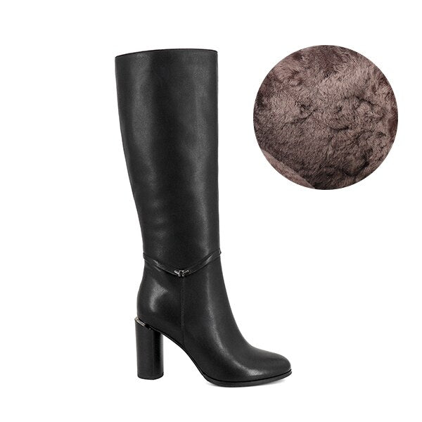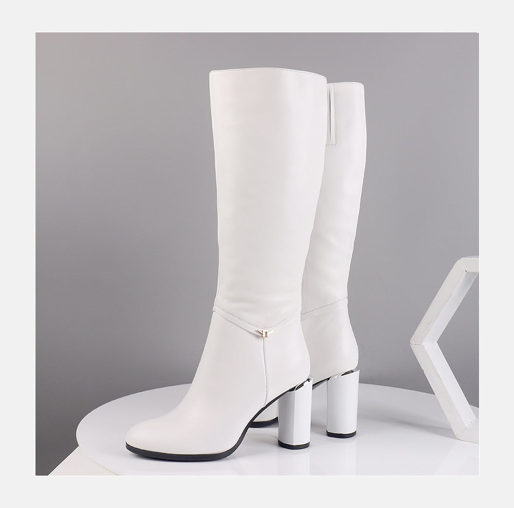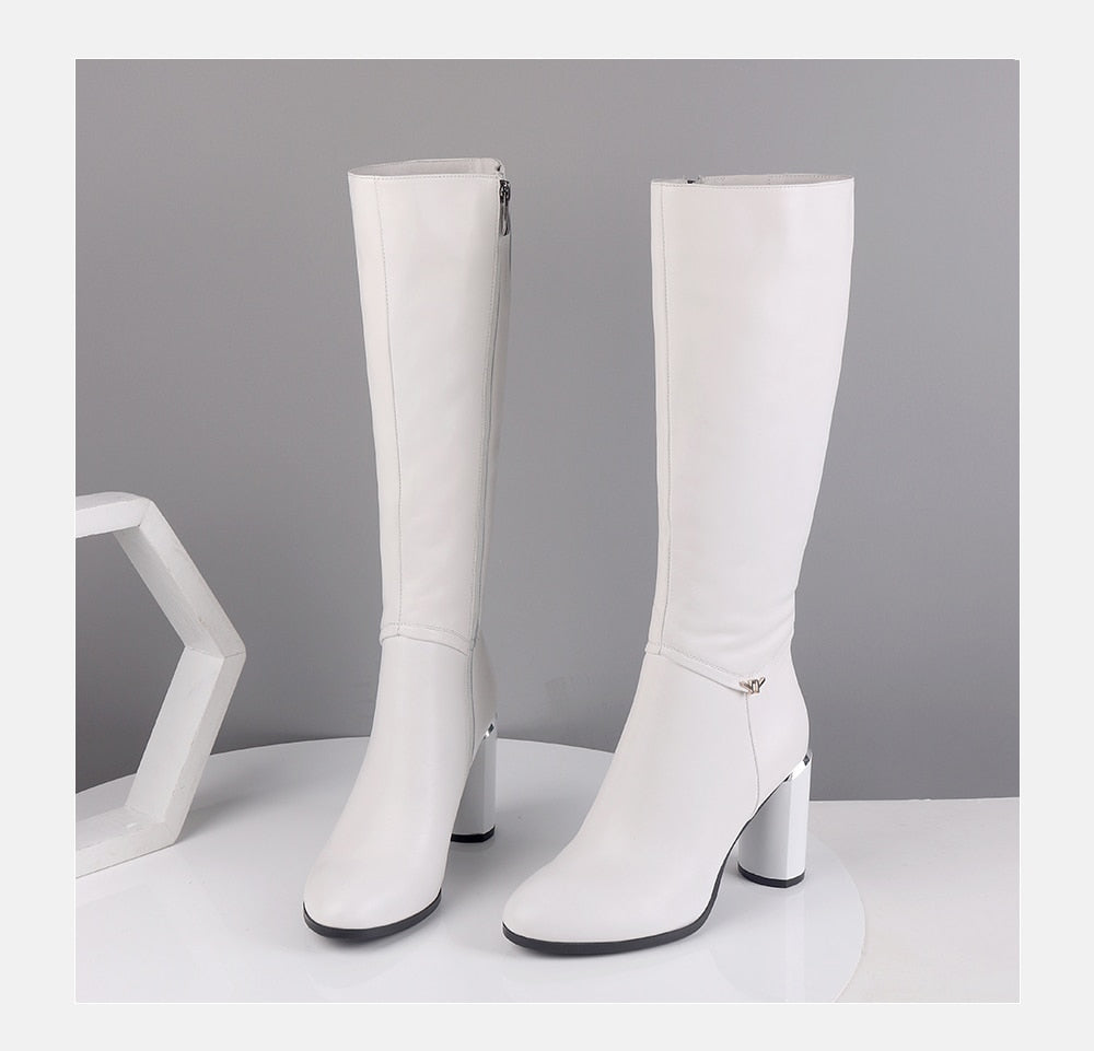 Winter Women's Boots Cow Leather Knee-High Round Toe Fashion High Round Heels Shoes Metal Decoration Zipper Boots BA7