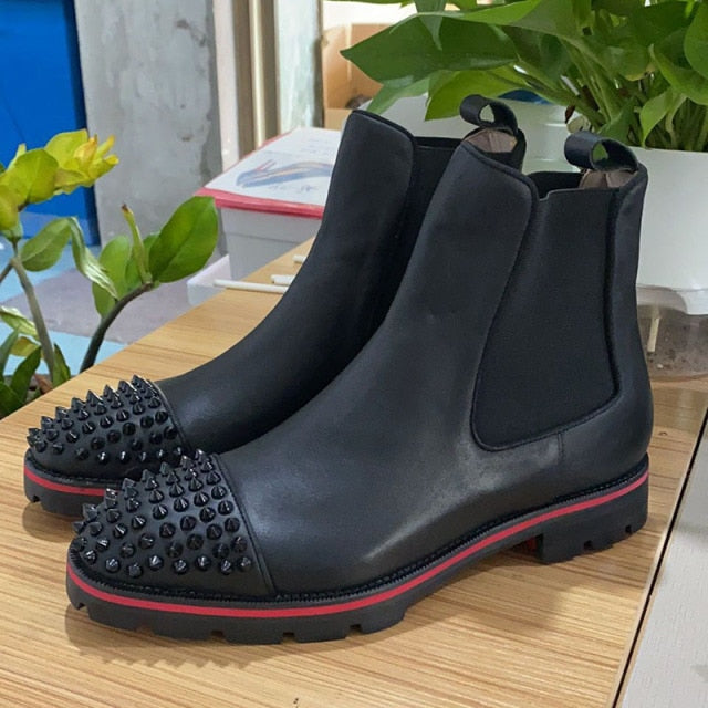 Spiked Ankle Boots Man Round Toe