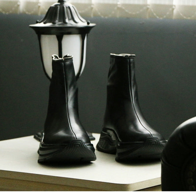 Sports leather boots cowhide rear zipper short boots heightened TPU bottom cowhide thick-soled men's boots