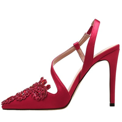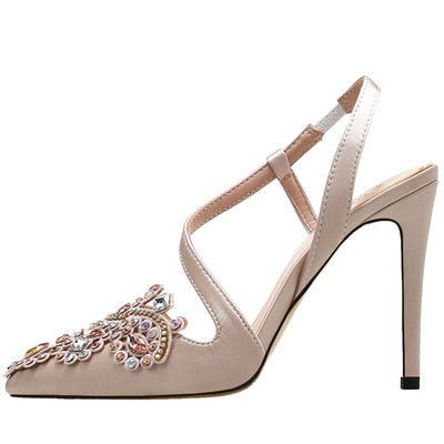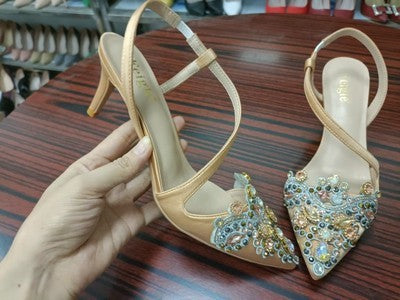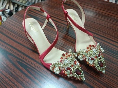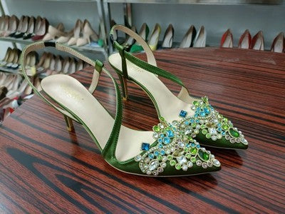 Spring and summer pointed rhinestone stiletto bridal sandals
