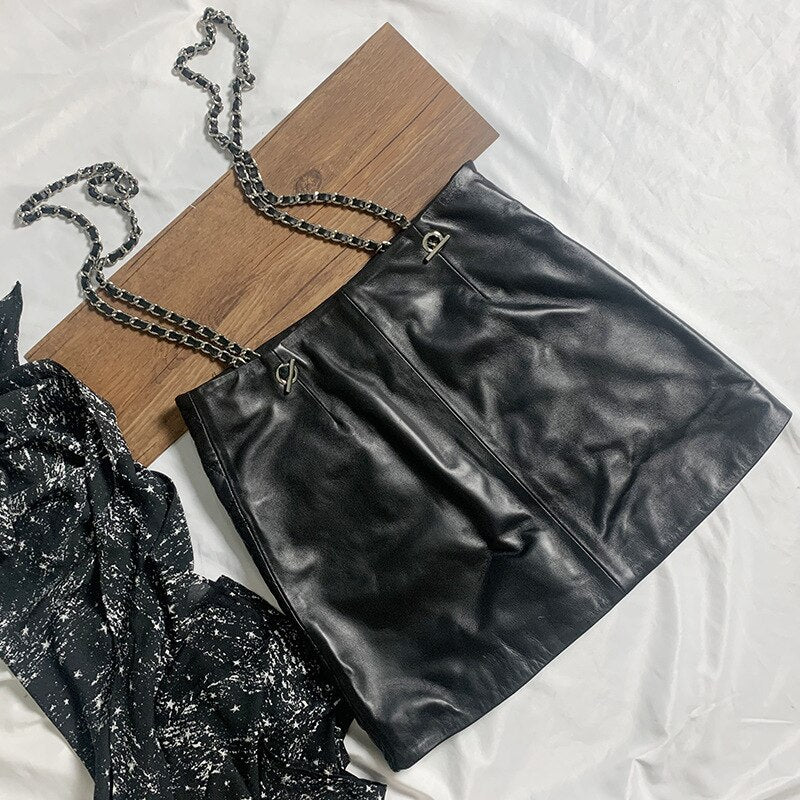 Women's Chic Genuine Leather Pockets A-line Skirt