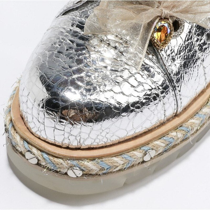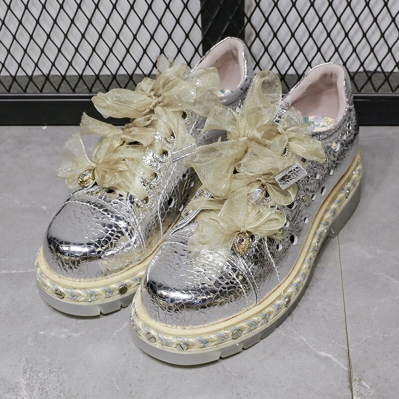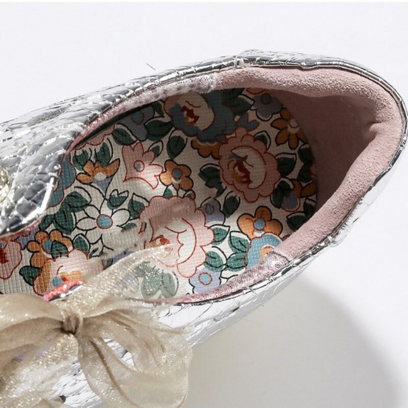 Women Lace Up Med Heel Shoes High Street Sweet Wedges Sneakers Silver