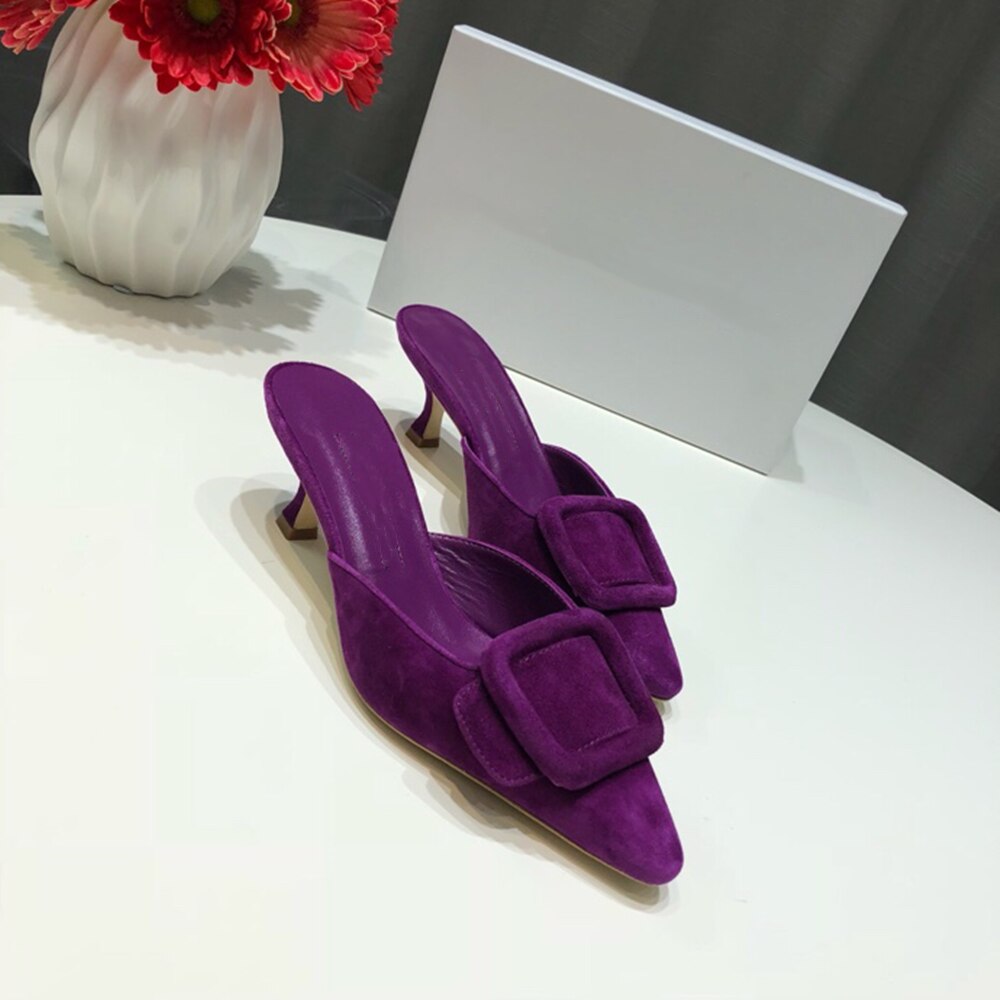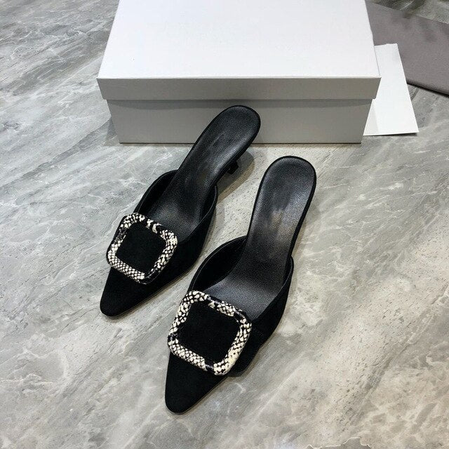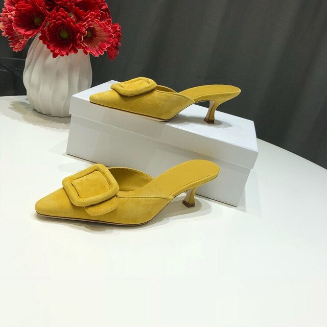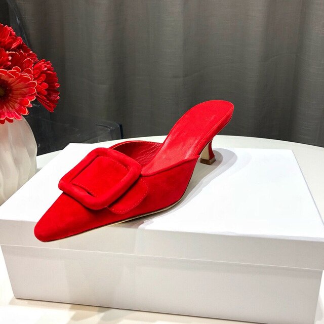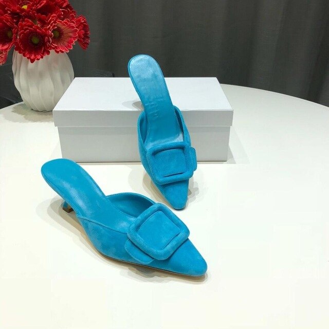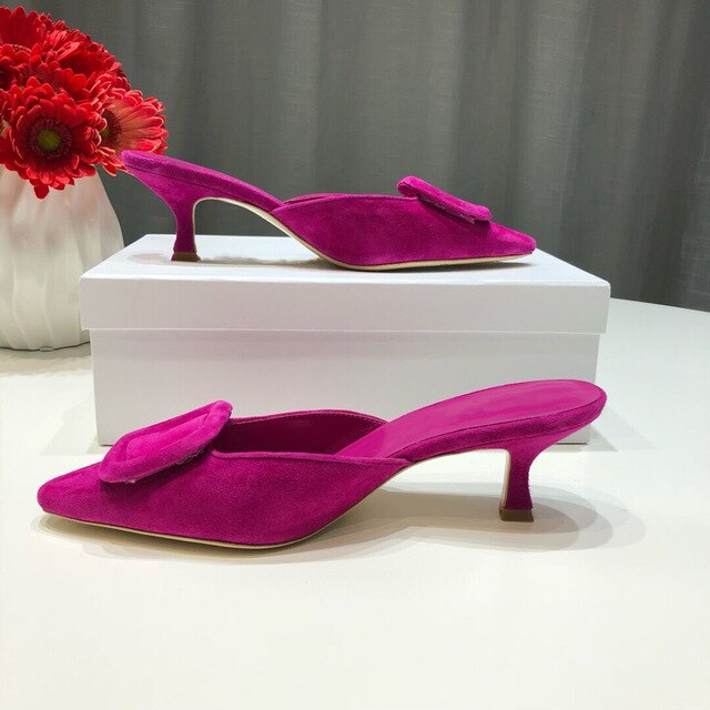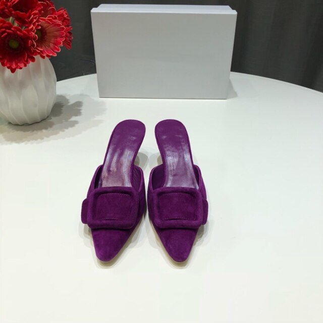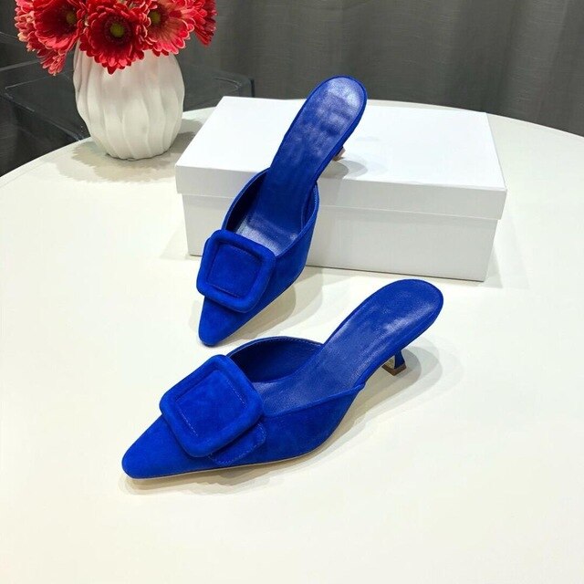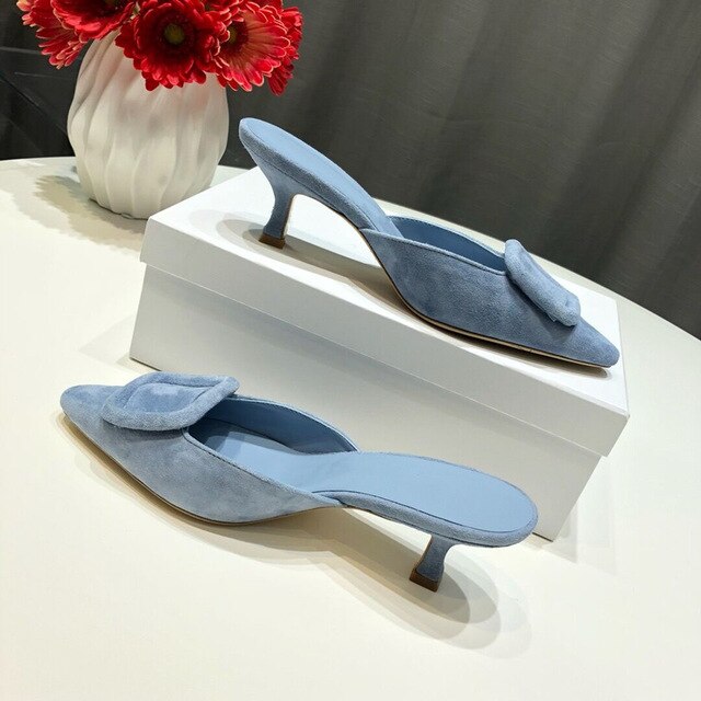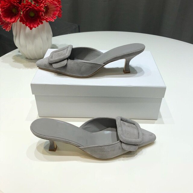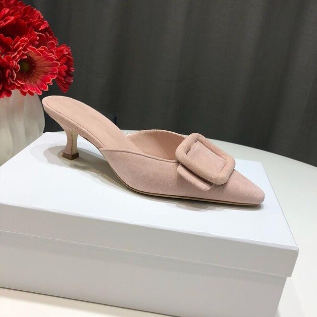 Spring/Summer Faux Suede Women Sandals Shoes Mid Thin Heel Genuine Leather Sole Women Shoes Mature Slingbacks Wedding Shoes