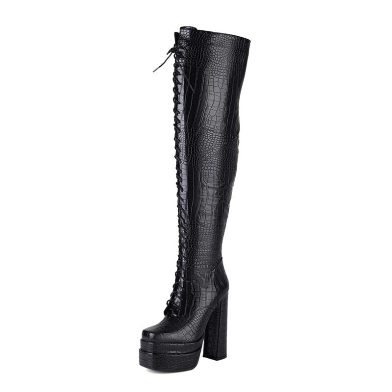 Square Toe Over The Knee Boots Thick Bottom Side Zipper Ladies Shoes
