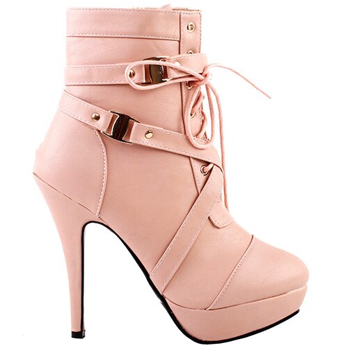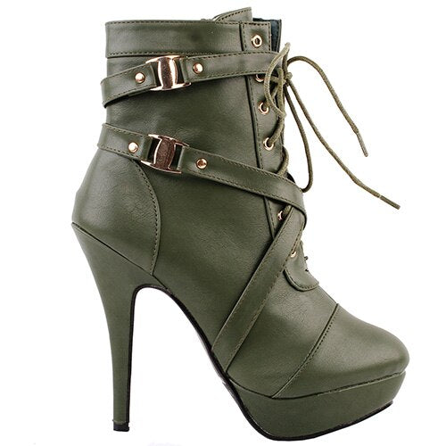 Strap Buckles Zip High Heel Platform Ankle Boots