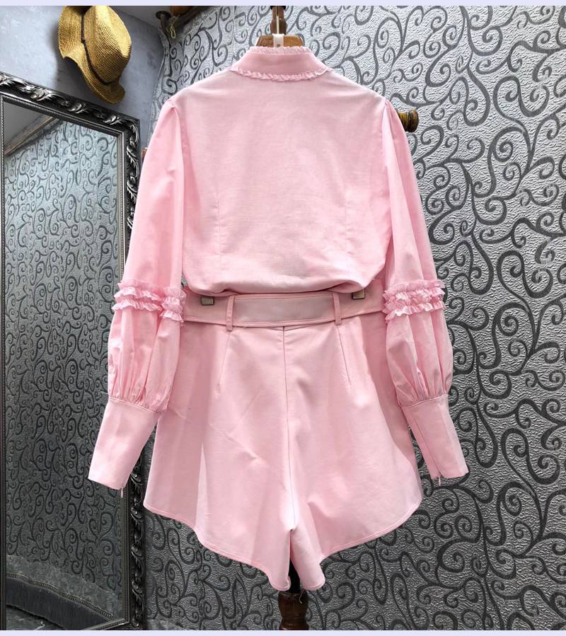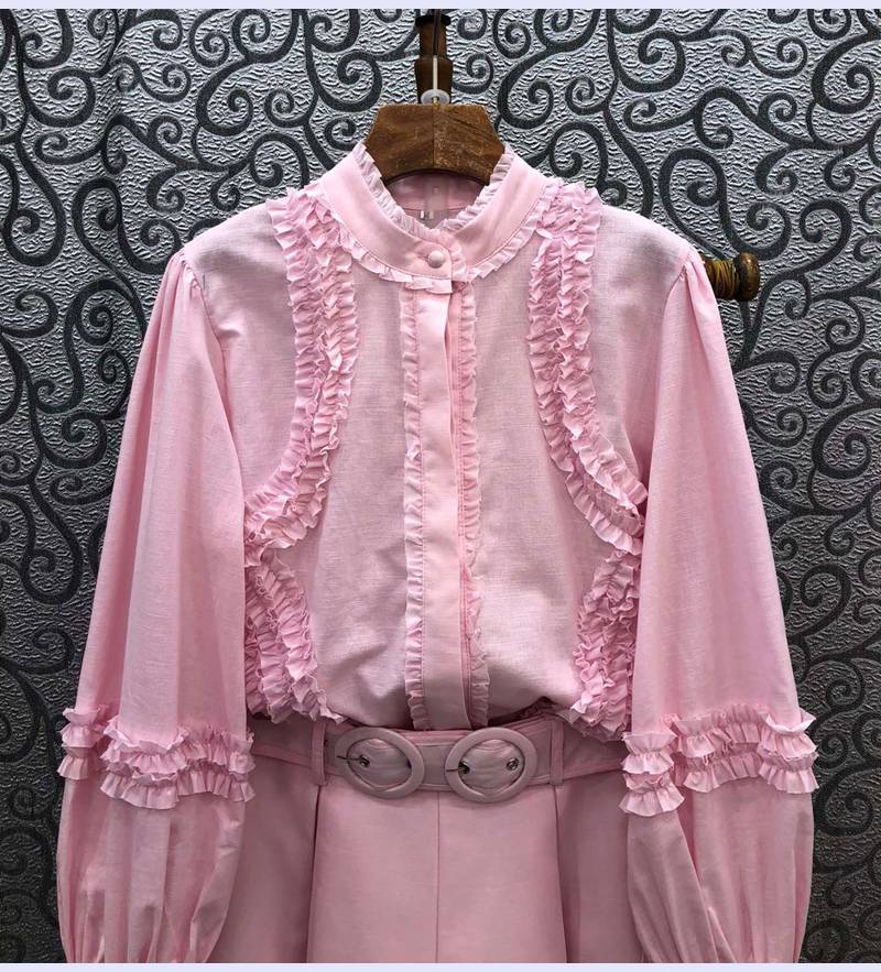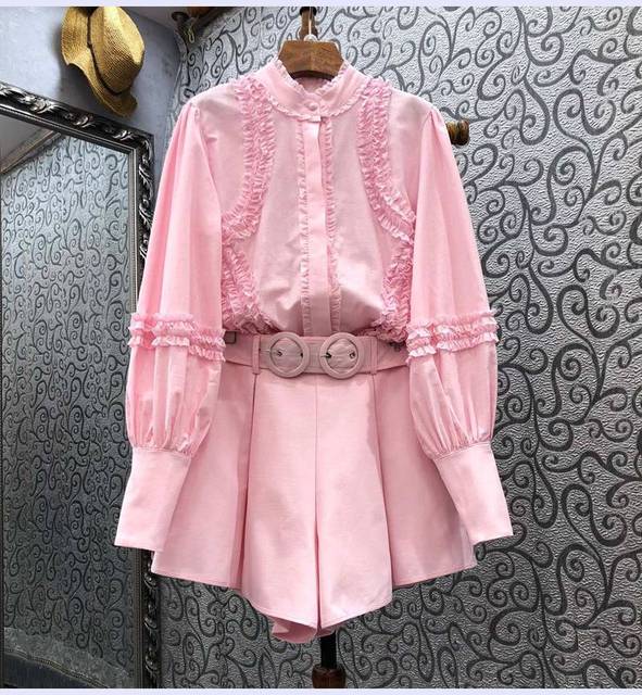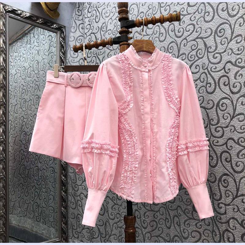 Summer 2 Piece Set Ladies Ruffle Long Sleeve Shirts