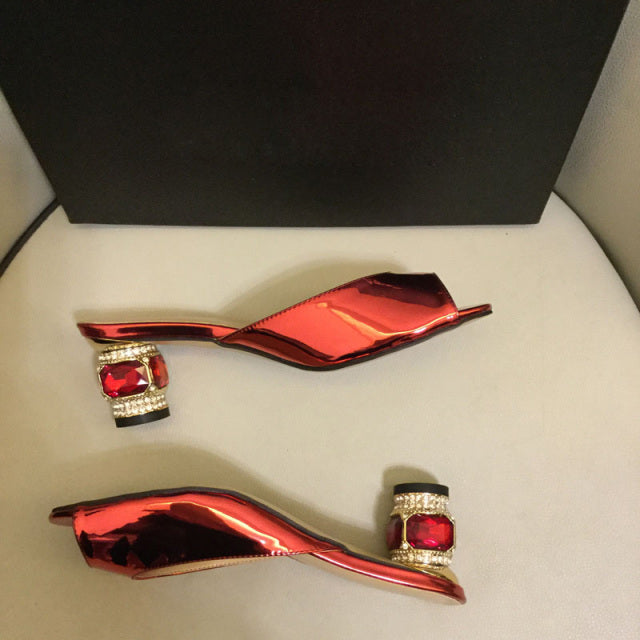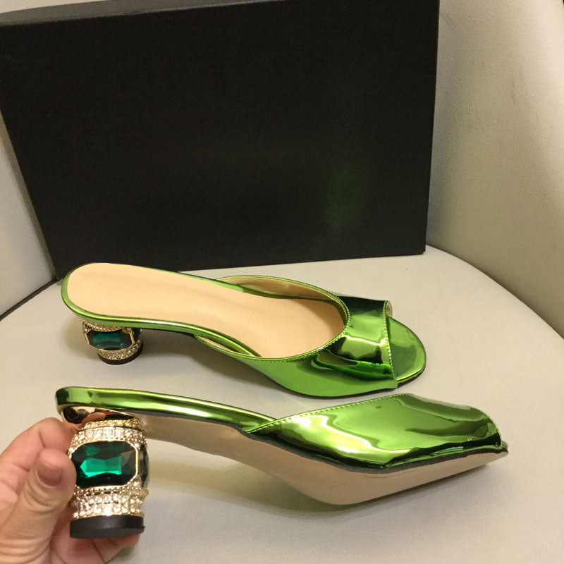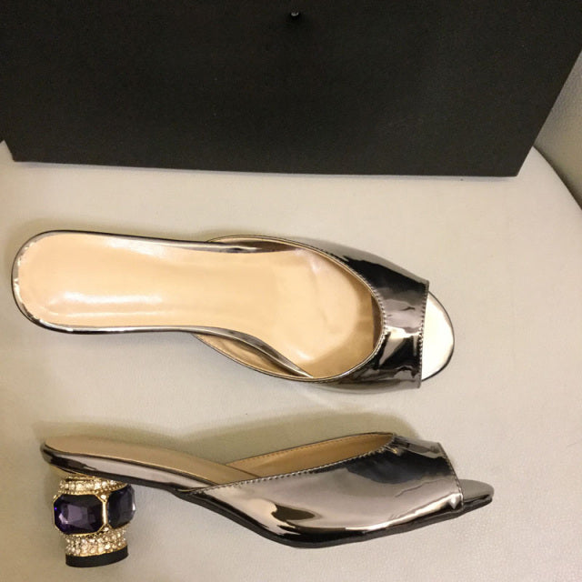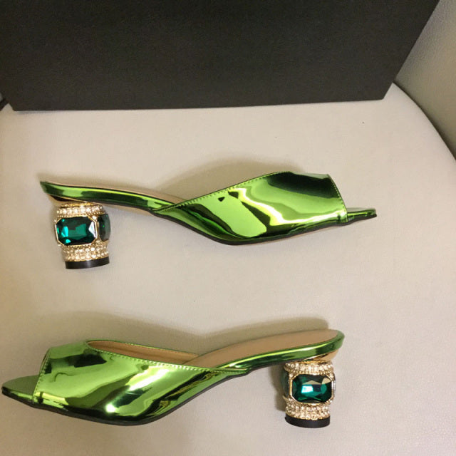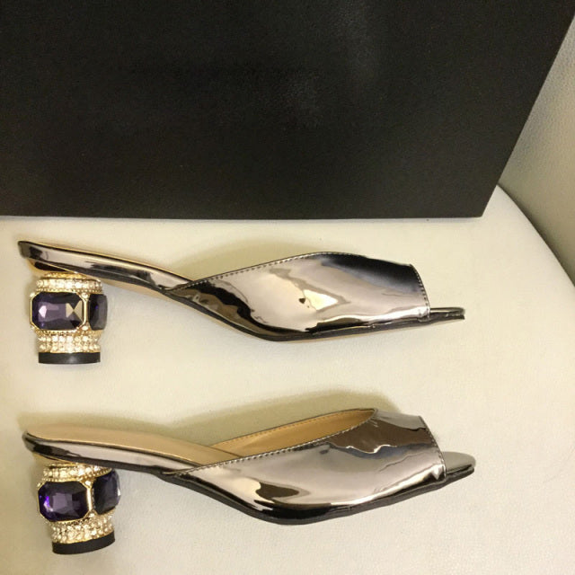 Summer Big Rhinestone Jeweled Med Heels Slipper Sandals Women