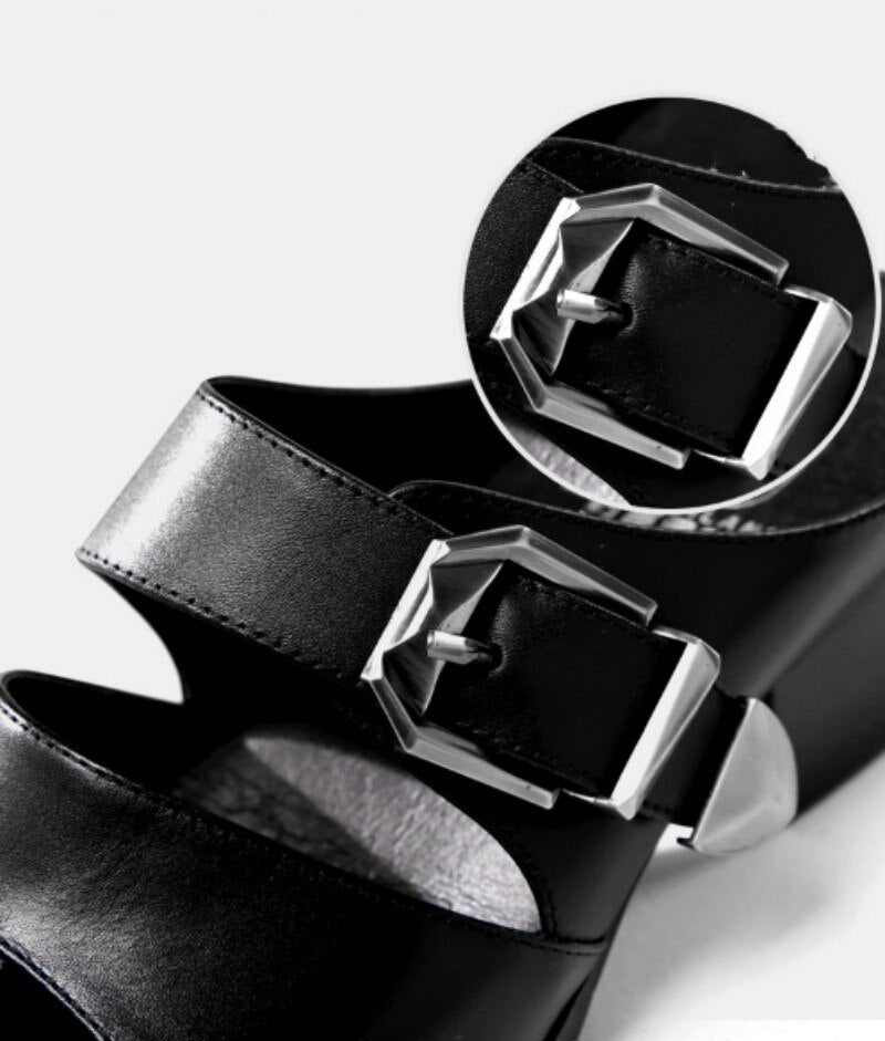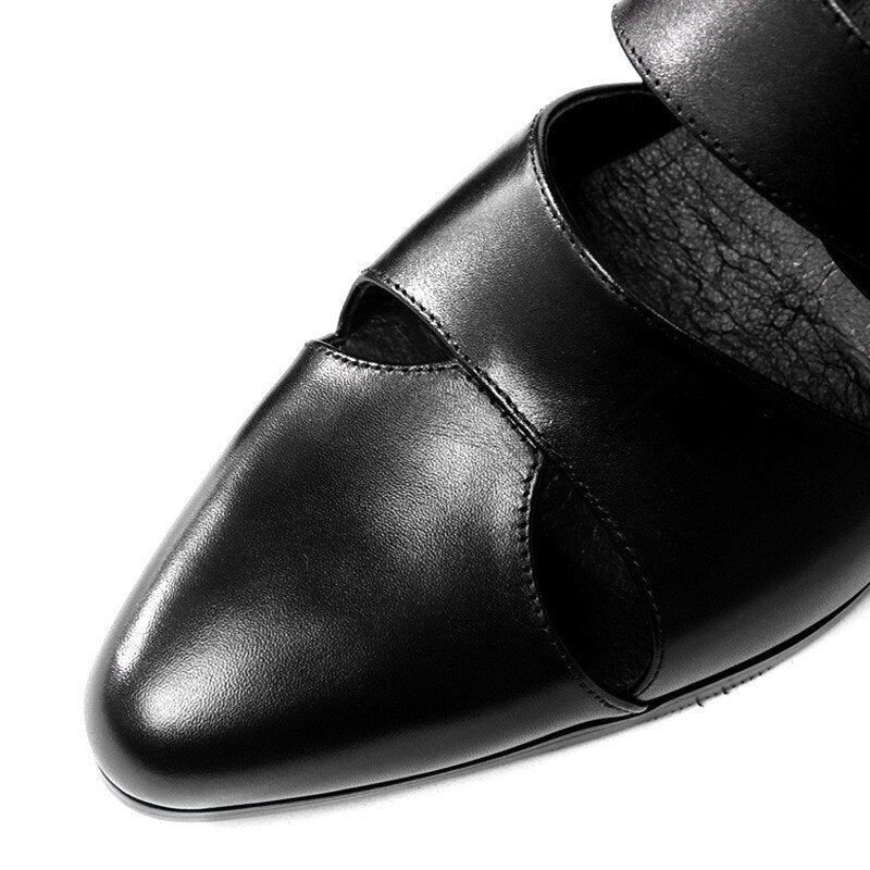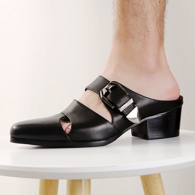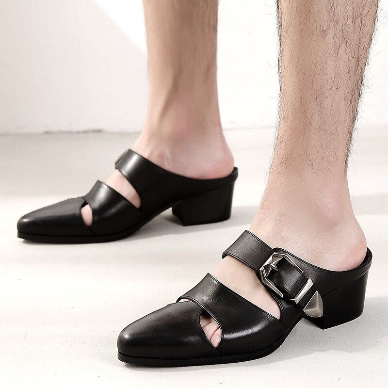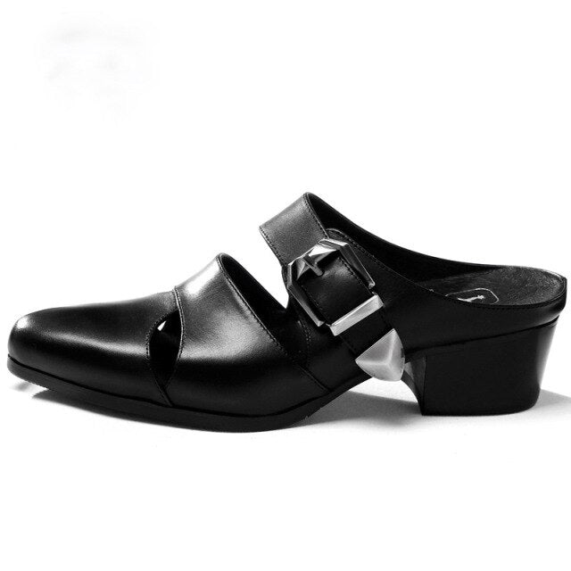 Pointed Toe Buckle Hollow Leather Shoes Male Black Sandals