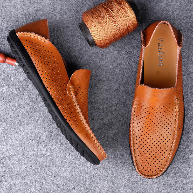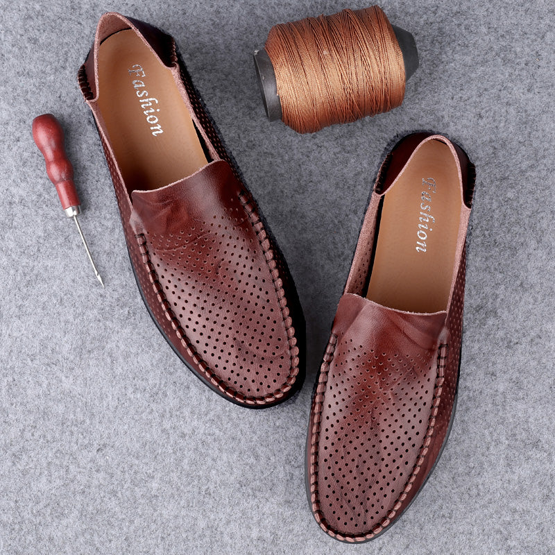 Summer Hollow Genuine Leather Shoes Men Comfortable Mesh Loafers