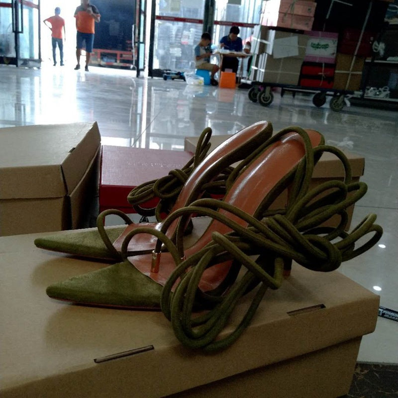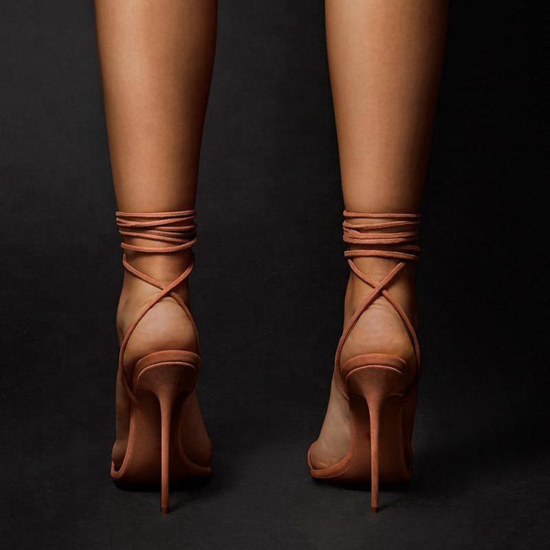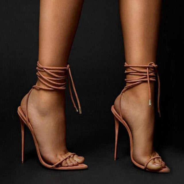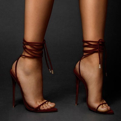 Hand-made Thin Strap Sandals Ankle Straps Stiletto High Heel Party shoes
