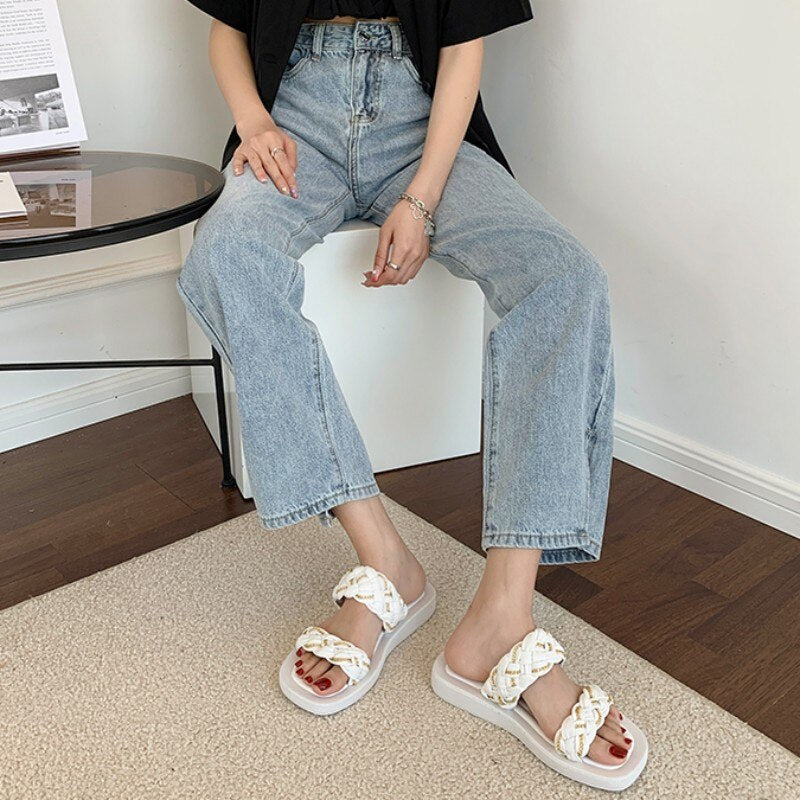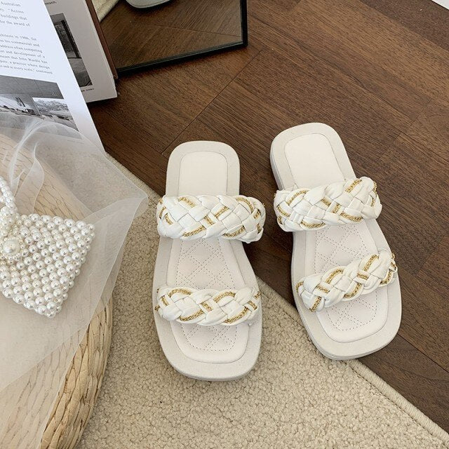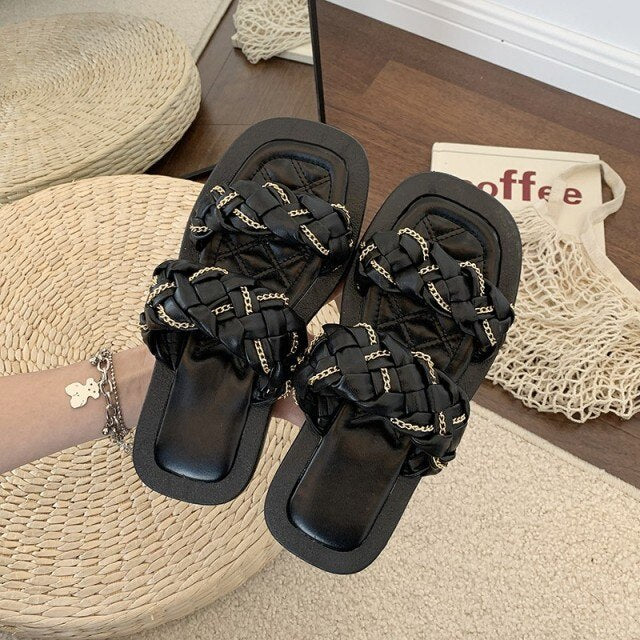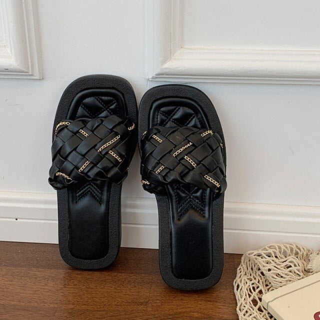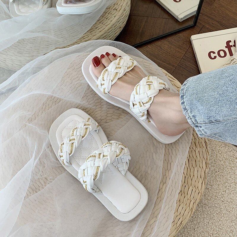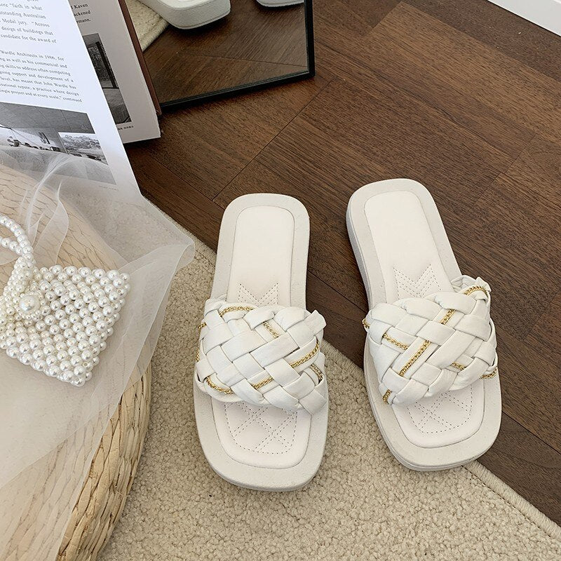 Ladies Holiday Beach Shoes Pu Leather Flats Casual Slippers