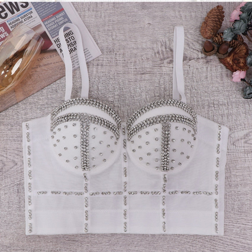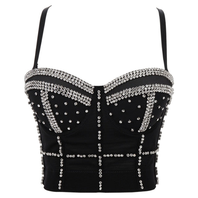 Rhinestone Beads Shine Nightclub Sexy Top