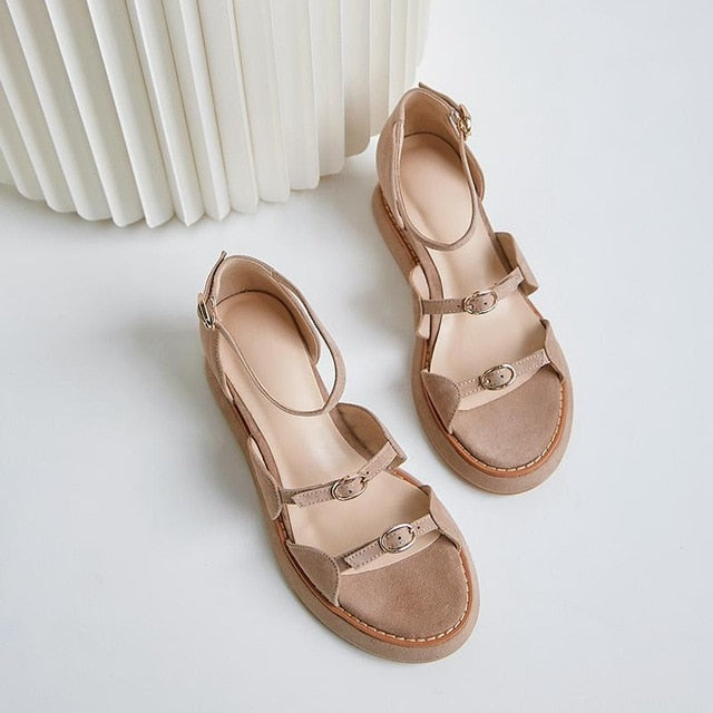 superstar kid suede buckle strap peep toe high heel wedge platform women sandals elegant cover heel office lady summer shoes