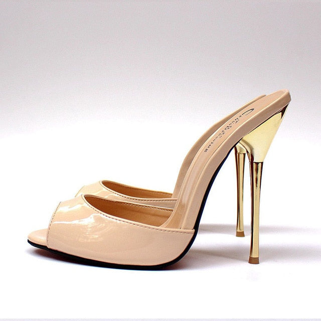 Gold Open Toe High Heels Pumps Women Sexy 13cm Stilettos Sandals