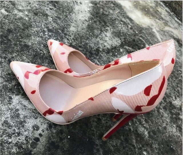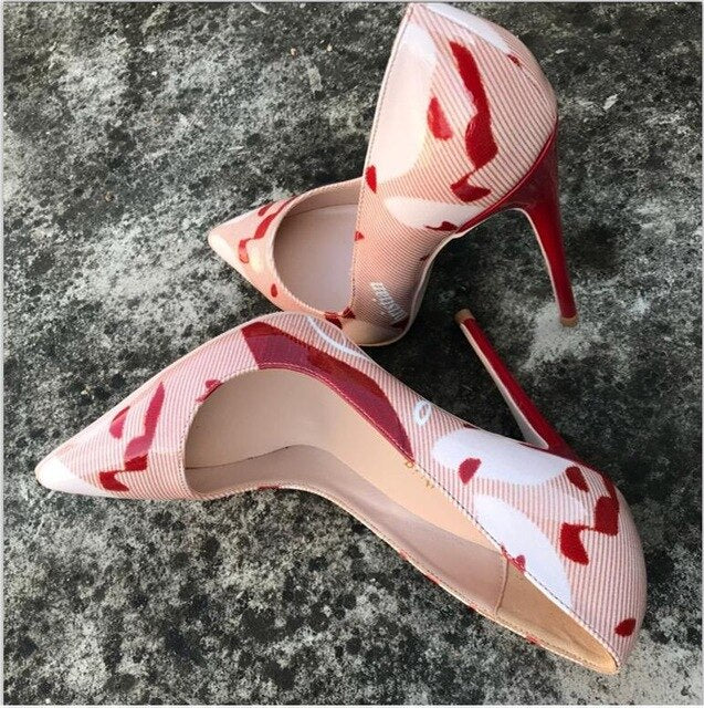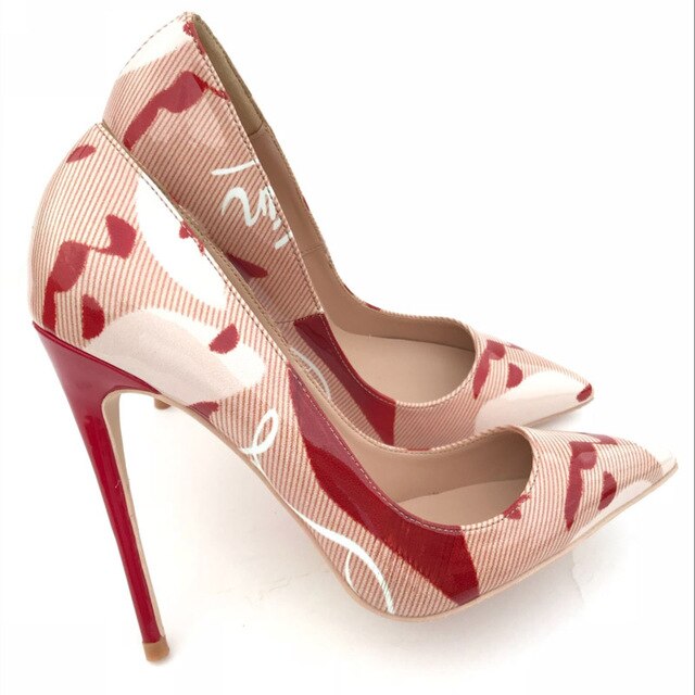 Red Printed Patent High Heel Shoes Woman 12cm Sexy Pumps Shoes Pointed Toe Slip-on Shoes Night Club Wearing Pigalle