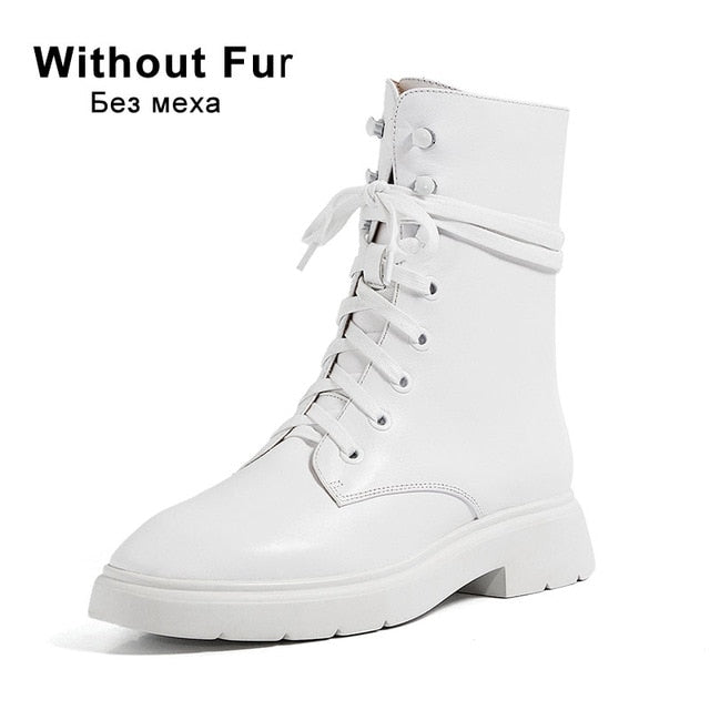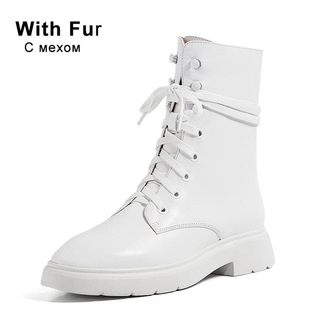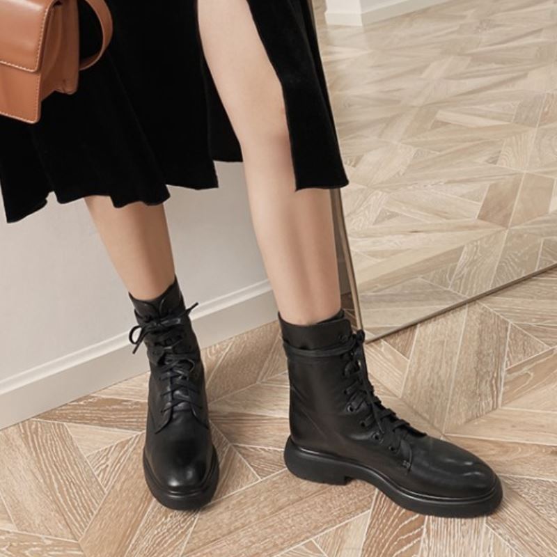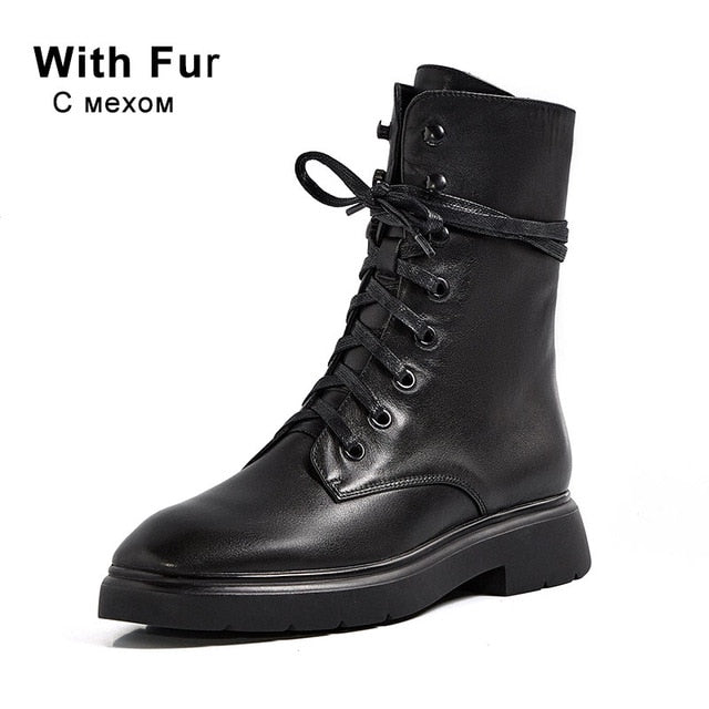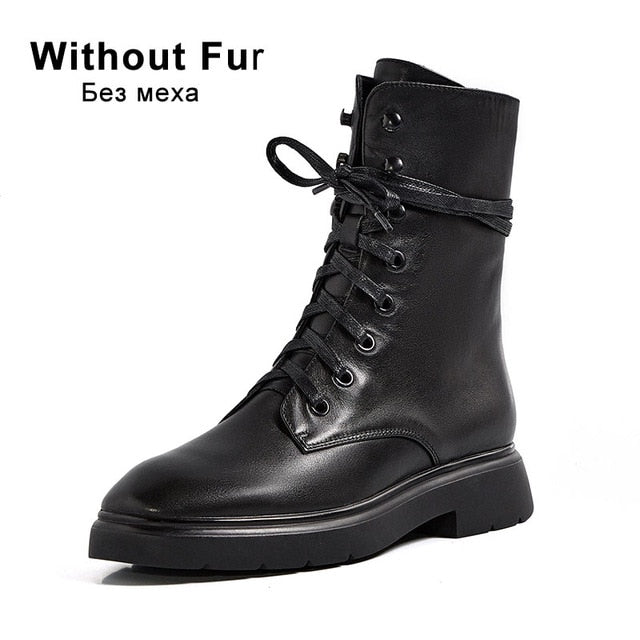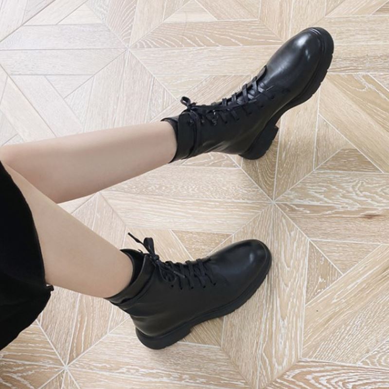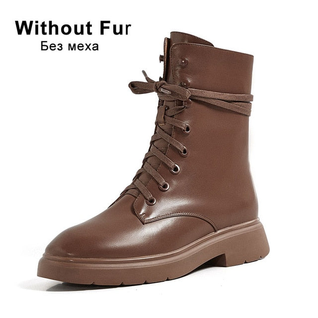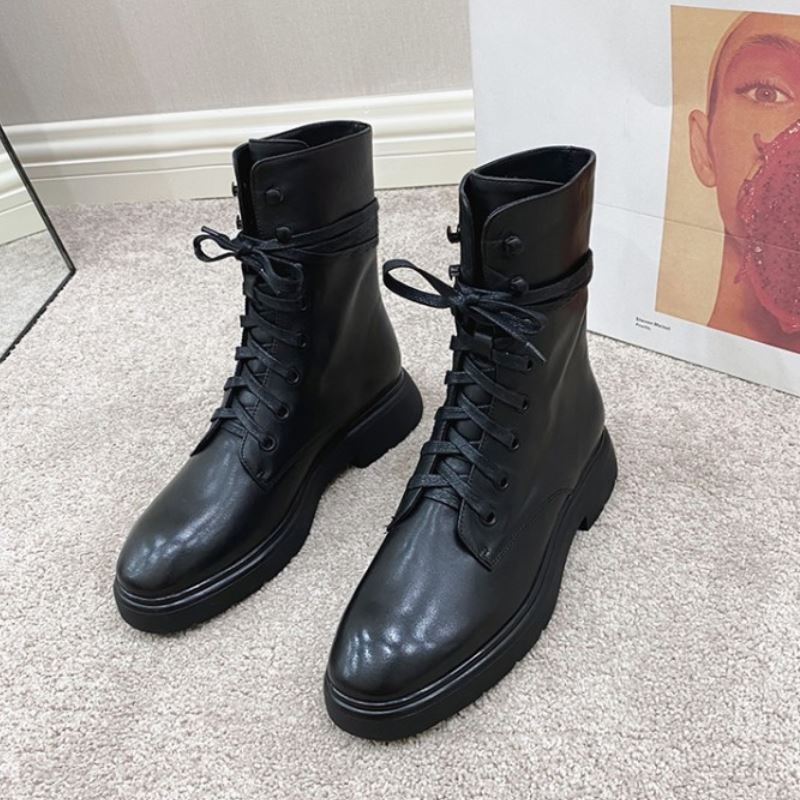 Size 33-42 Ins New Ankle Boots Women Round Toe Thick Heel Lace Up Genuine Leather Shoes High Quality Cool Shoes Footwear