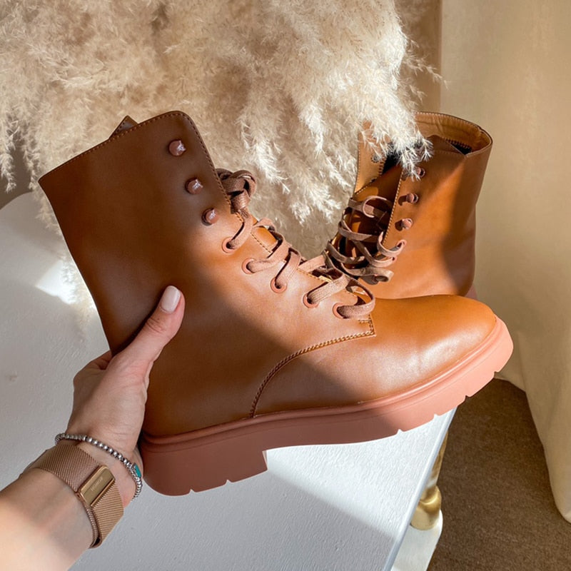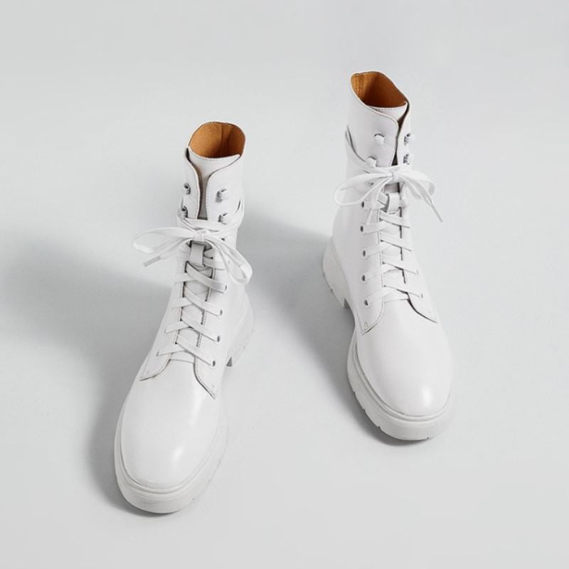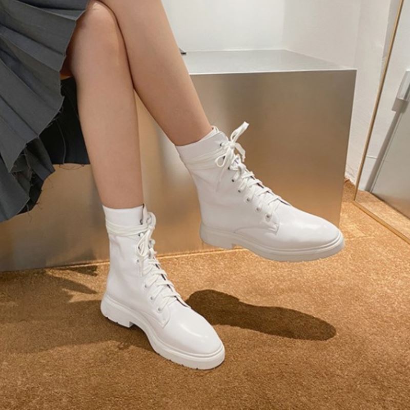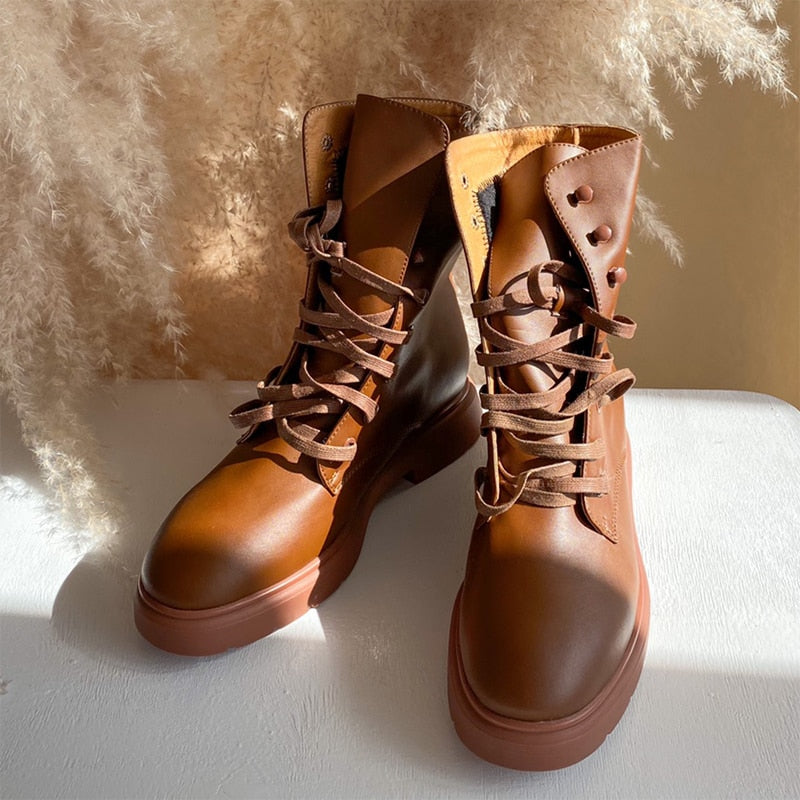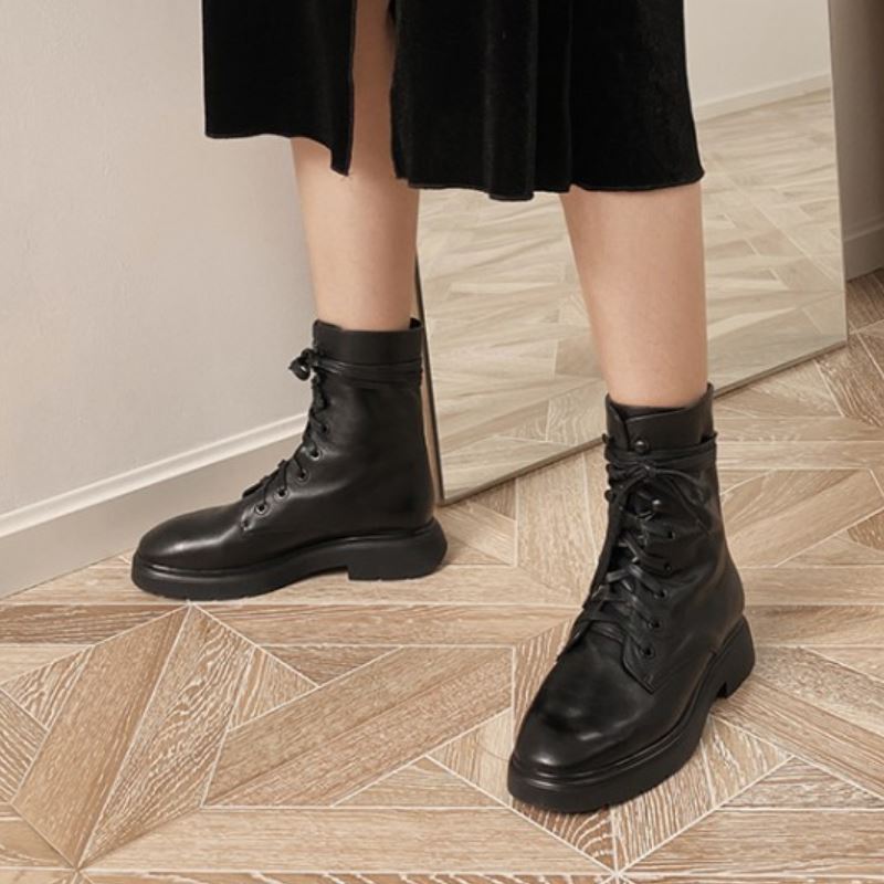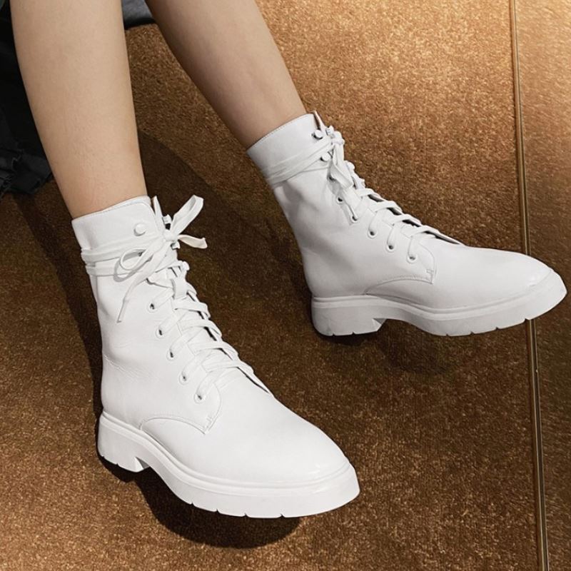 Size 33-42 Ins New Ankle Boots Women Round Toe Thick Heel Lace Up Genuine Leather Shoes High Quality Cool Shoes Footwear