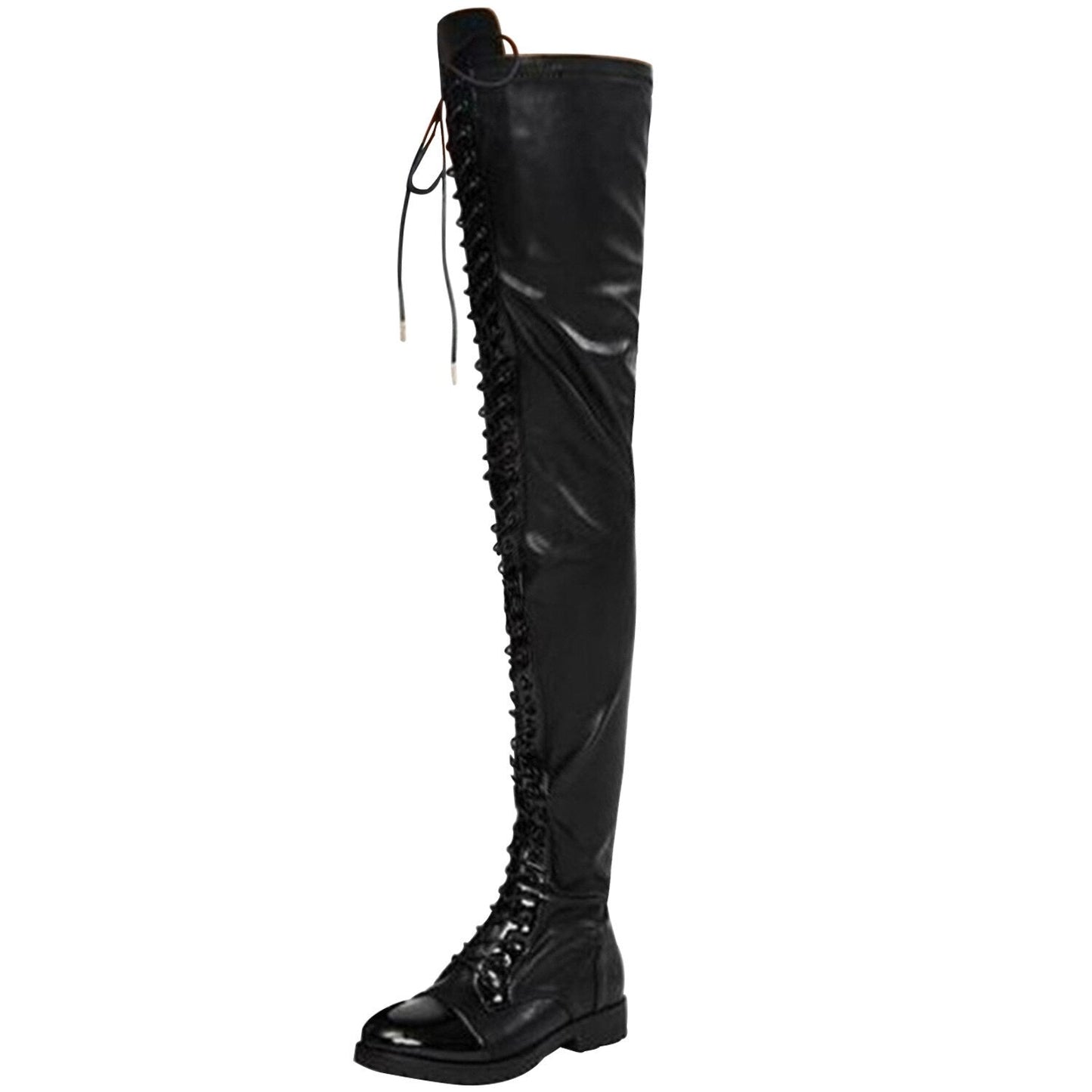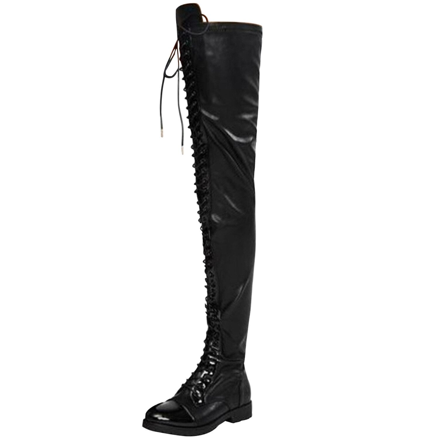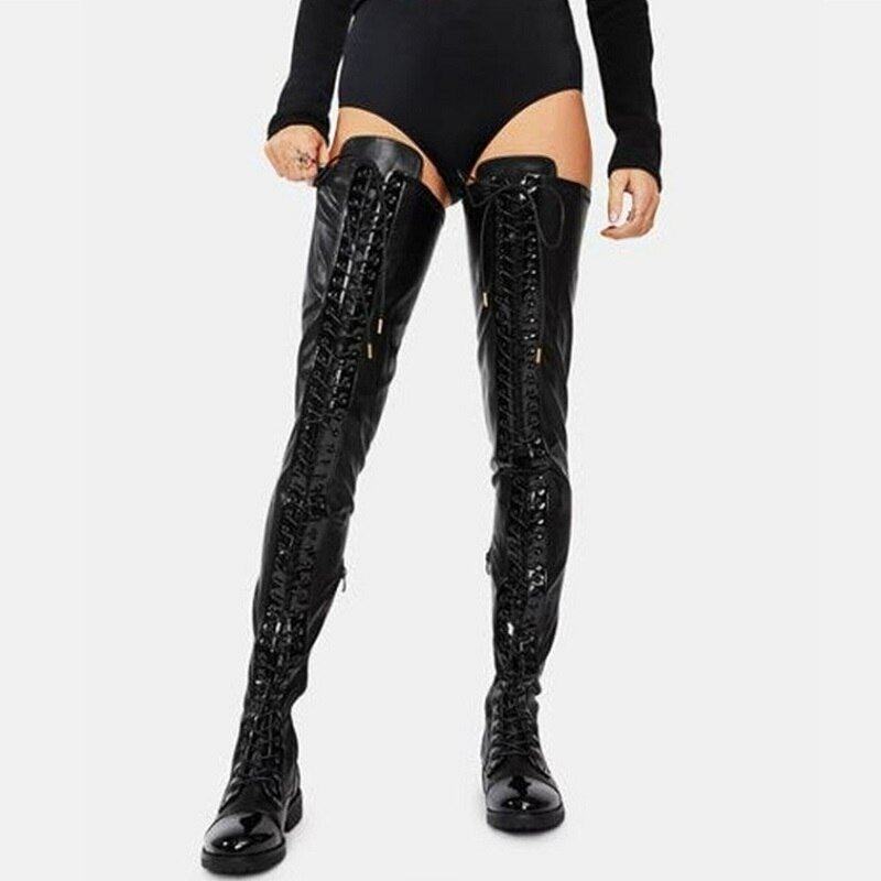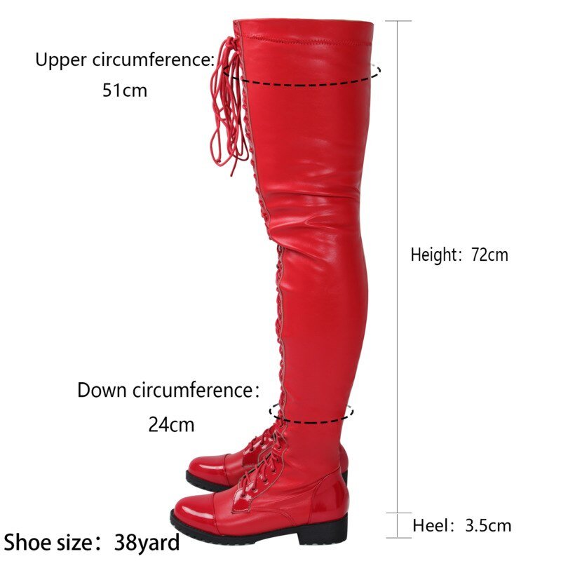 Thigh High Boots Women Winter Shoes Low Heels Lace-up Punk Shoes