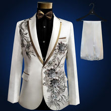 Three Pieces Set Suits Men's Singers Perform Stage Show Sequins Embroidered Flower Red Blue Pink Wedding Suit Costume Homme