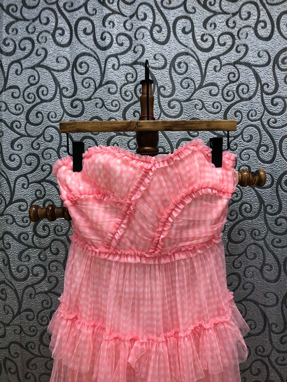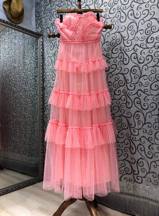 Top Quality New Summer Wedding Party Women Geometric Print Cascading Ruffle Lace Patchwork Strapless Casual Long Maxi Dress