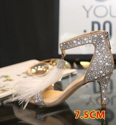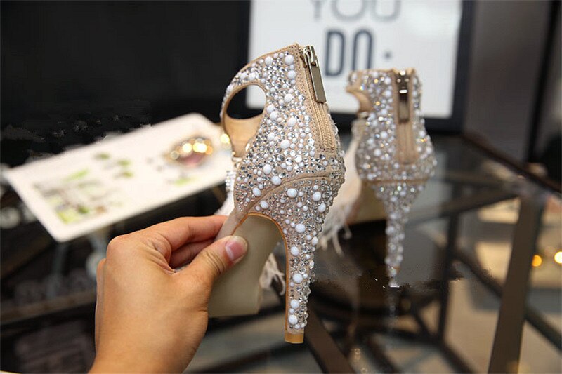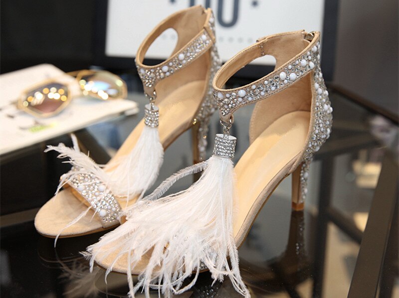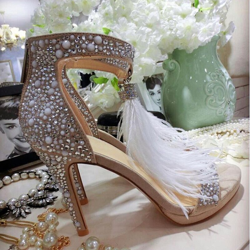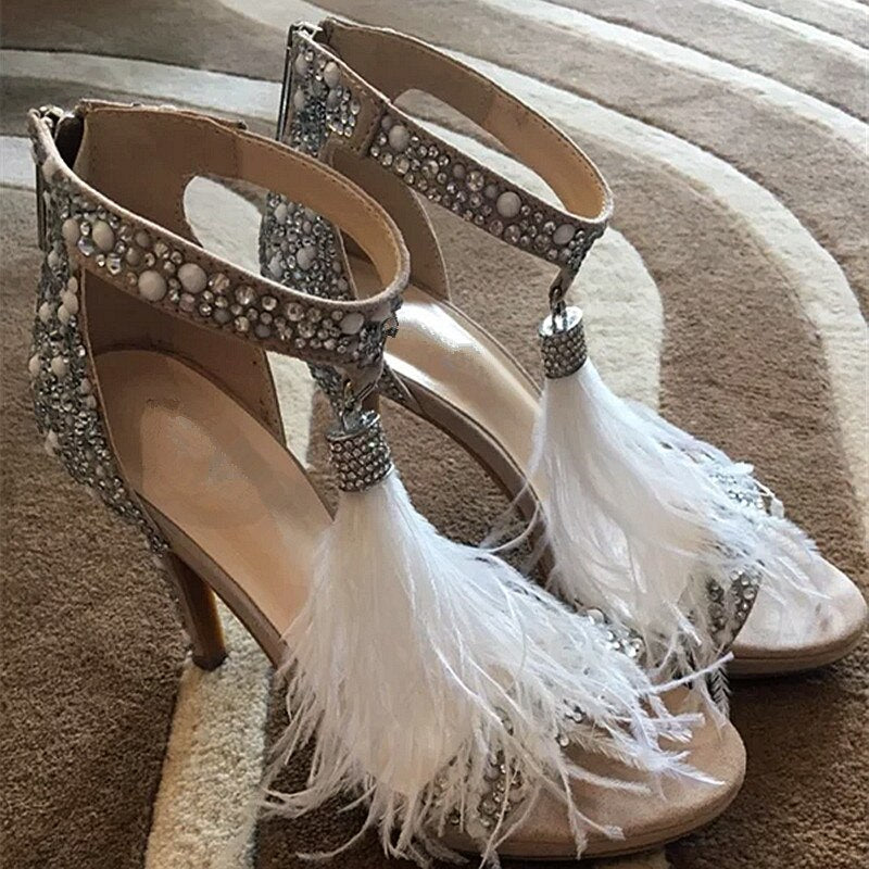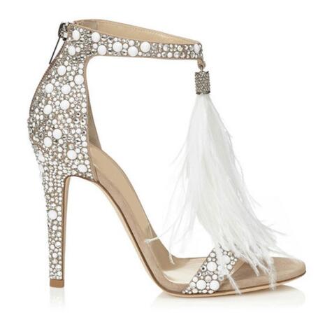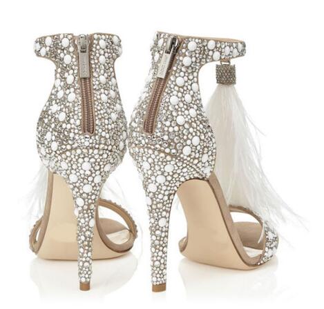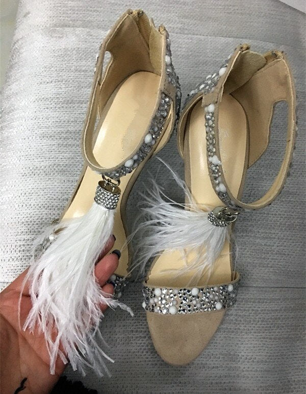 Crystal Embellished White High Heels Sandals