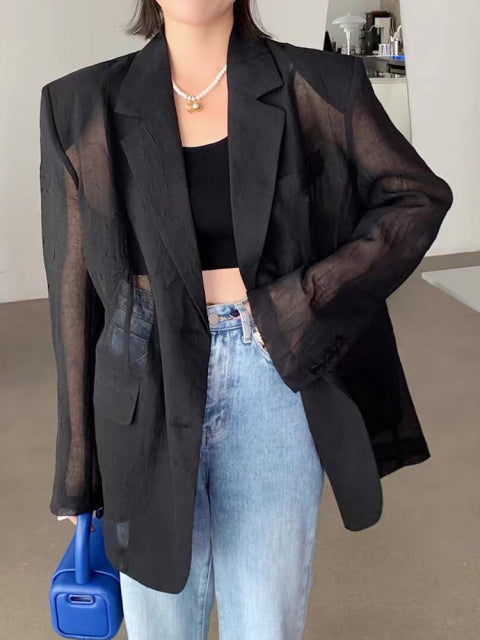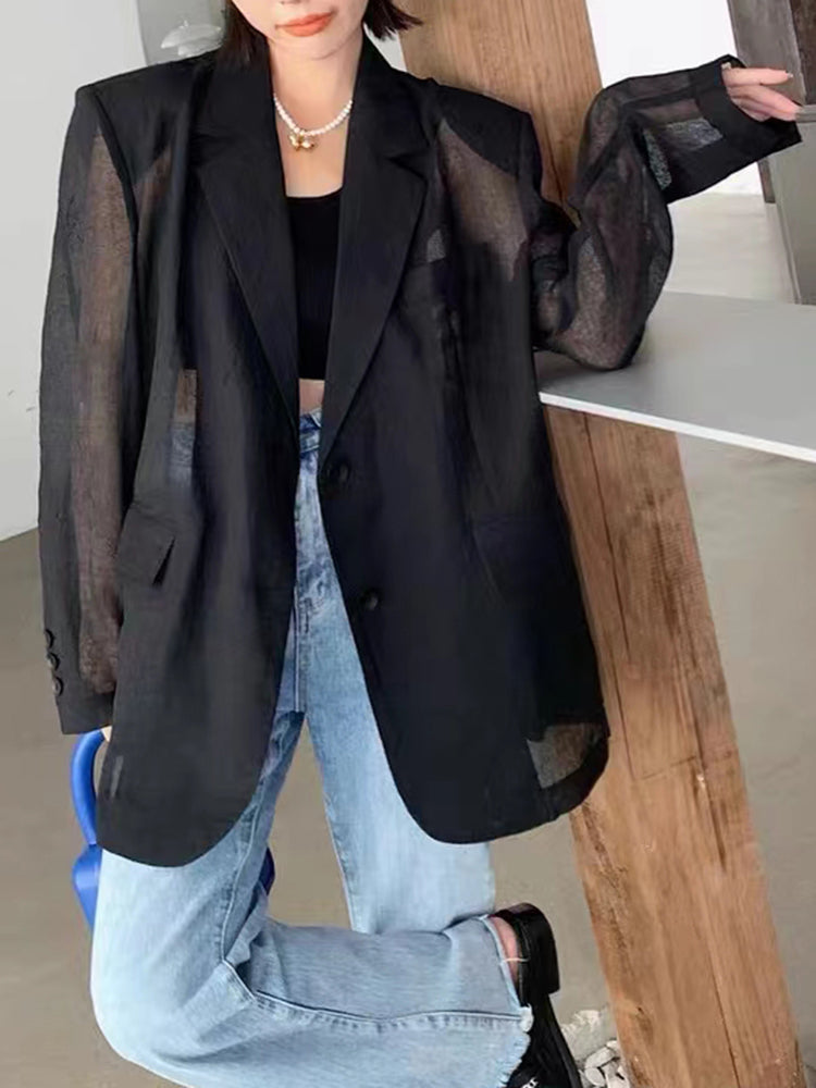 Casual Solid Blazer For Women Notched Collar Long Sleeve Blazers