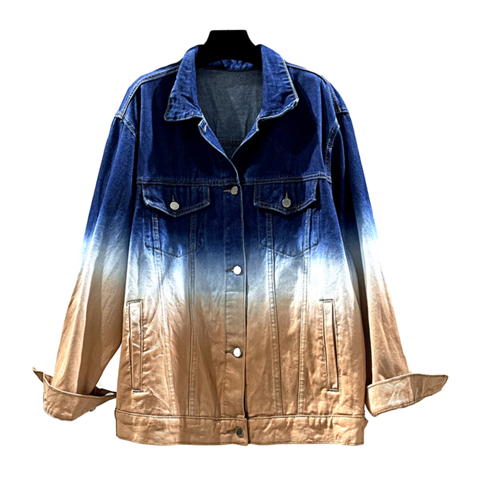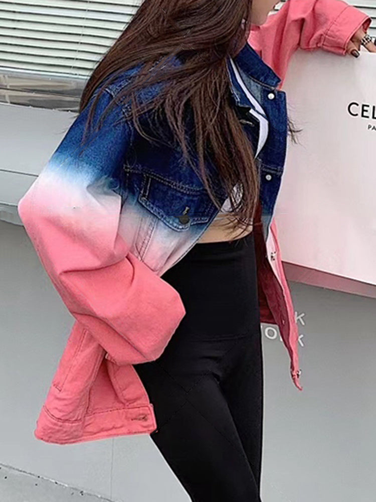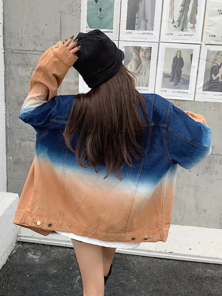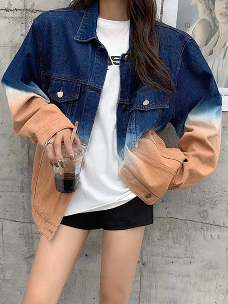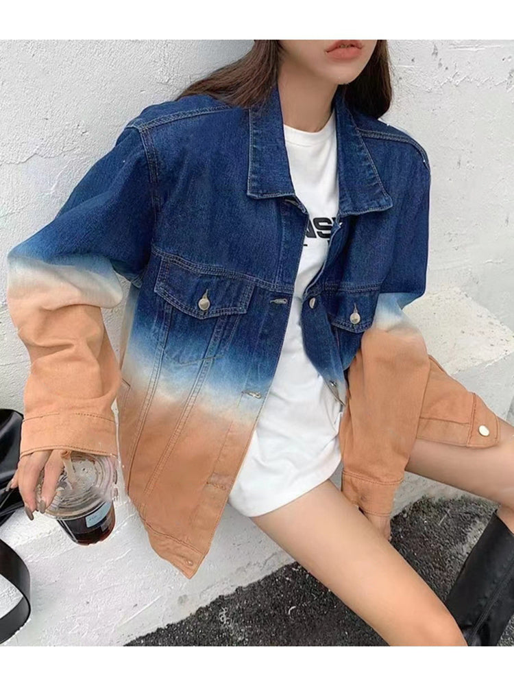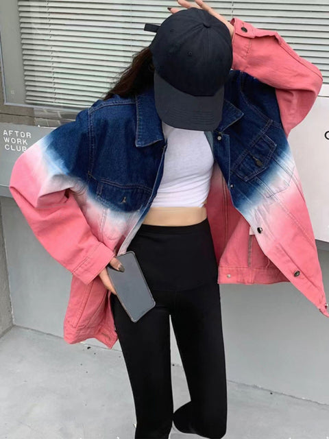 Fashion Women Lapel Long Sleeve Straight Loose Denim Jackets