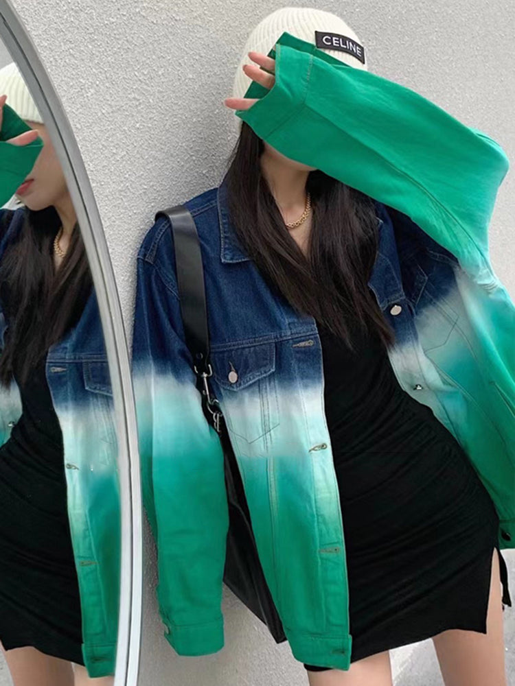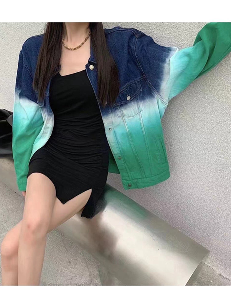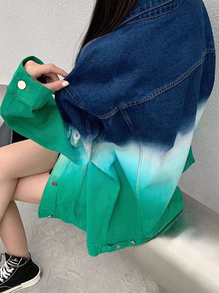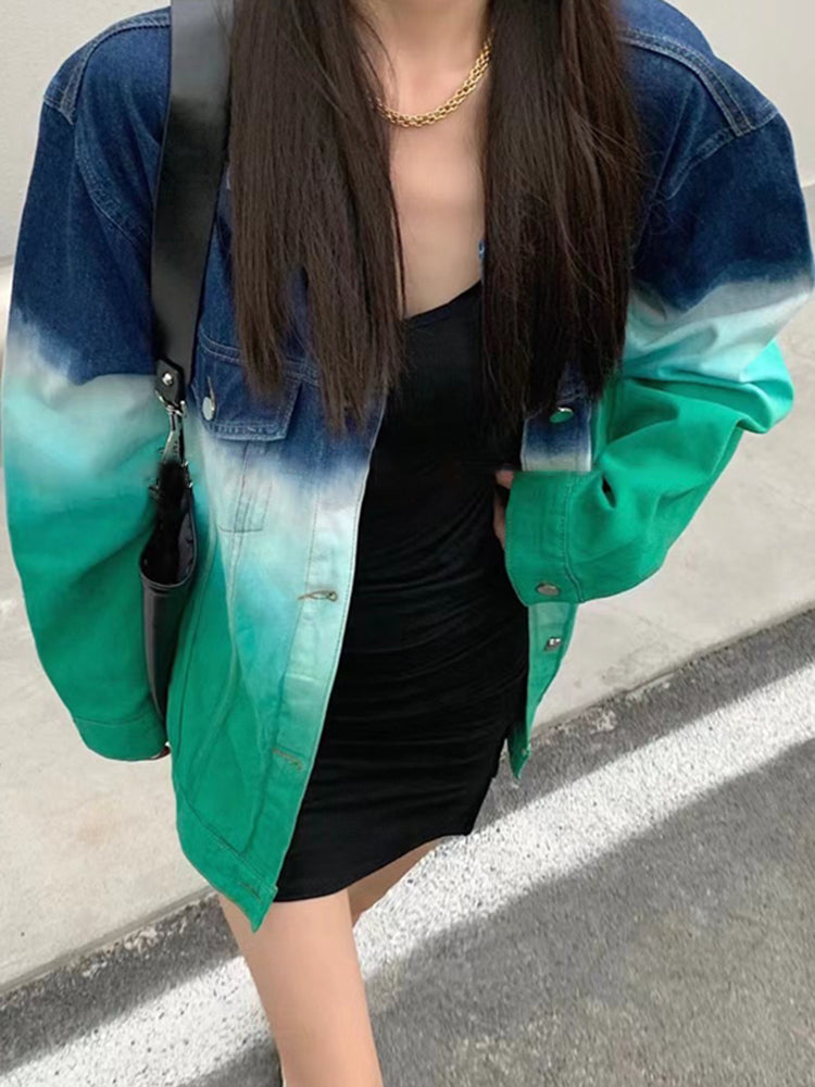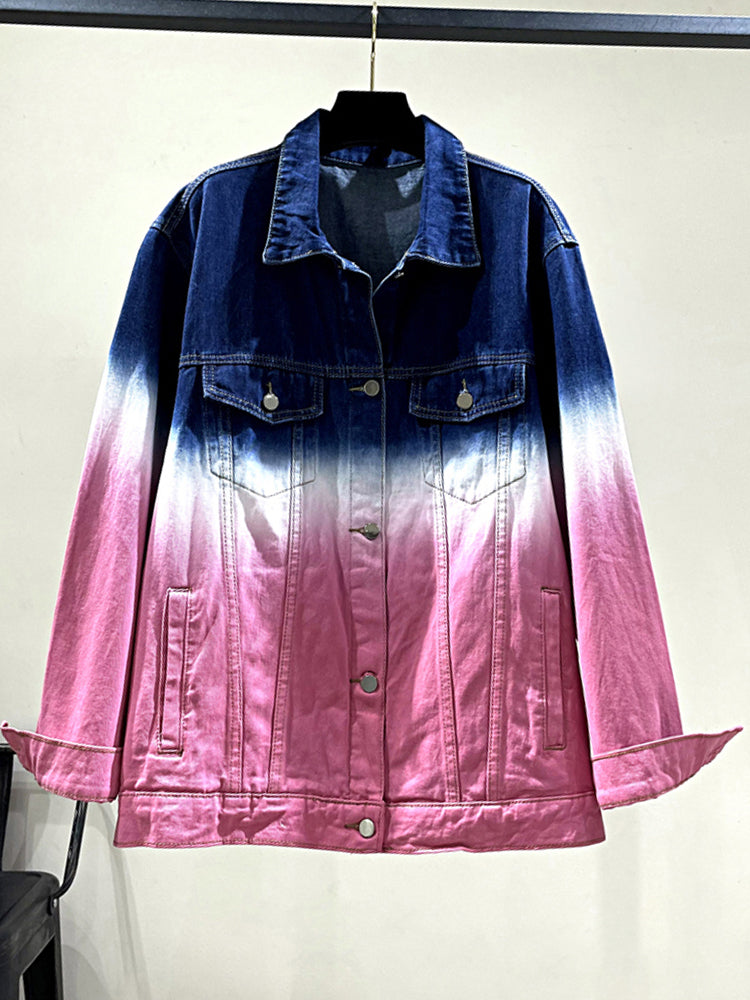 Fashion Women Lapel Long Sleeve Straight Loose Denim Jackets